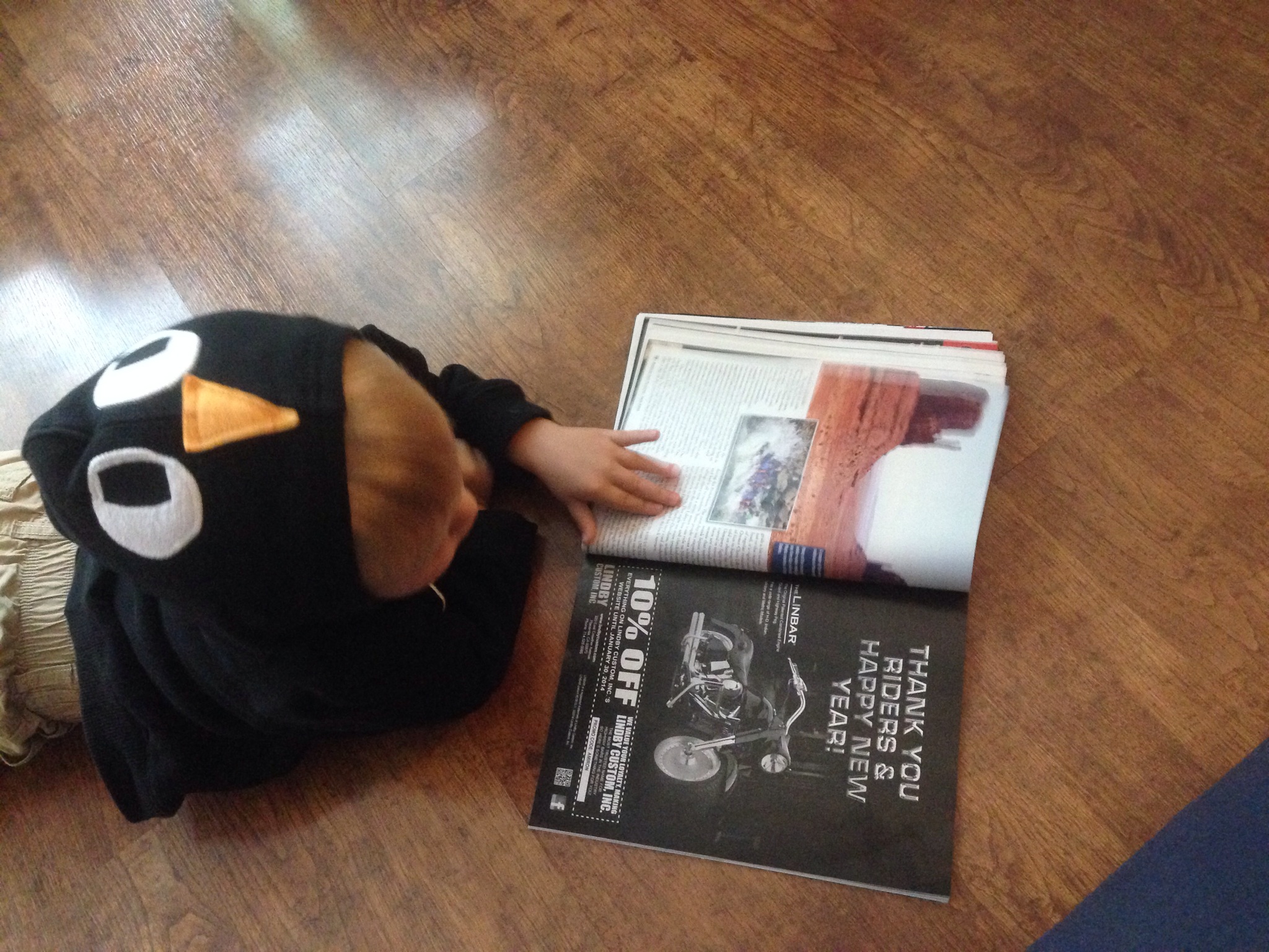 Too busy Colin shooed me away the other day. There was no way we were going to the playground until he finished reading this motorcycle magazine. I even got a narrative, “This is one kind of engine, and this is the other kind if engine…” Share this: Click to share on X (Opens in new window) X Click to share on Facebook (Opens in new window) Facebook Like Loading... Related