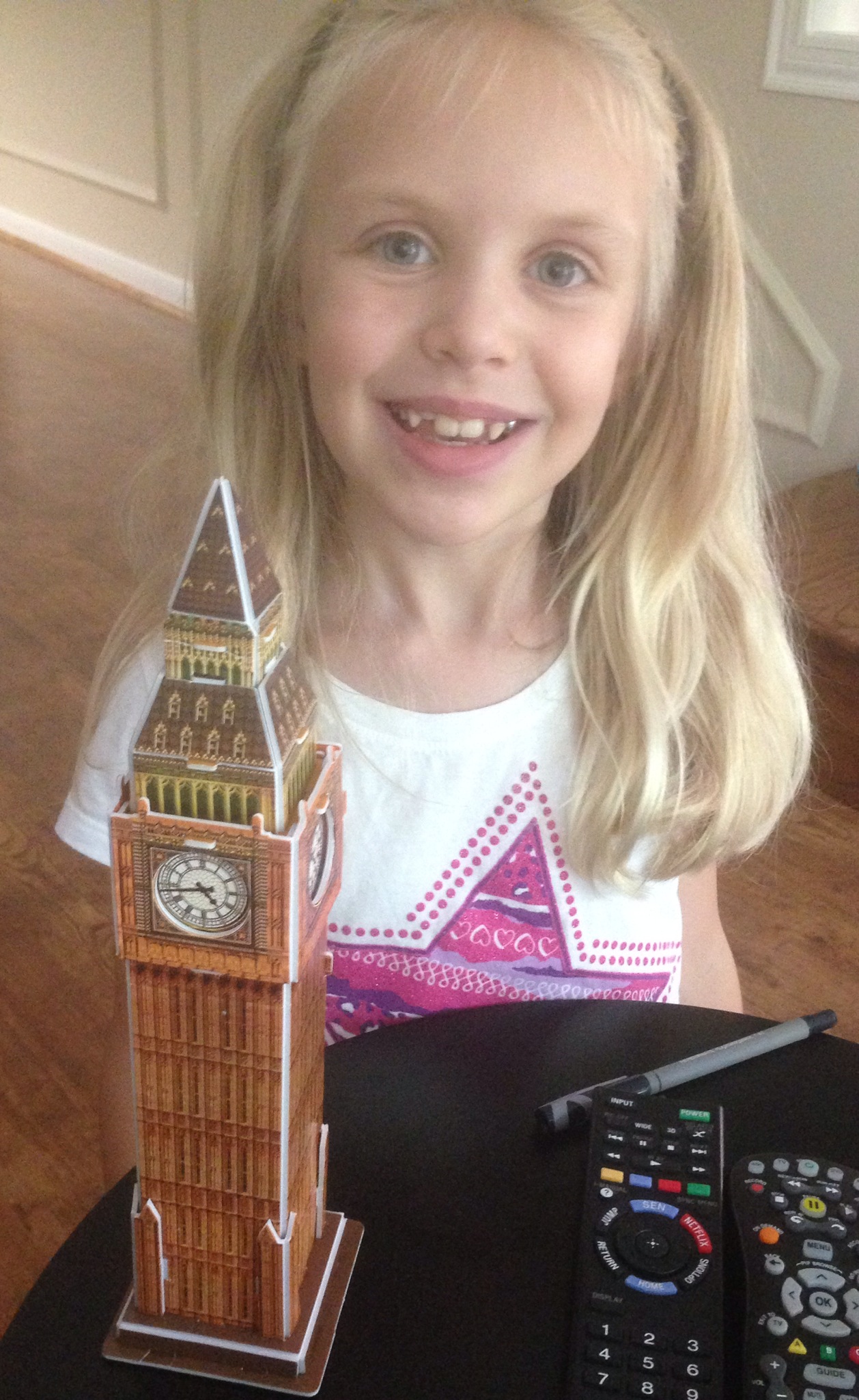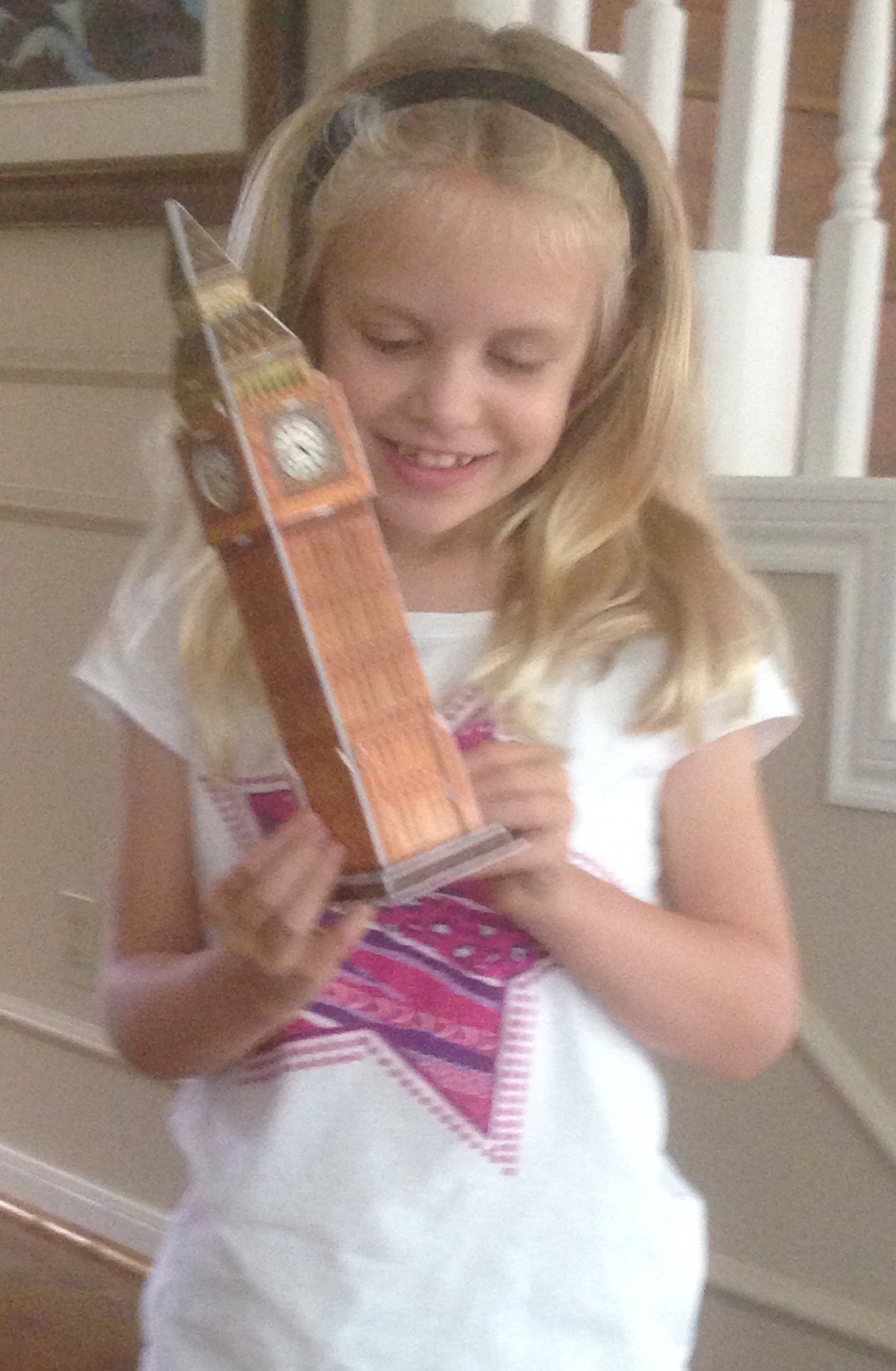 Laura has a monthly subscription to Little Passports, which follows a couple if adventurous kids as they visit places around the world. This month they went to London and did all the same tours and sights that Laura did with us last fall. They also sent her a 3D puzzle of Elizabeth Tower and Big Ben!