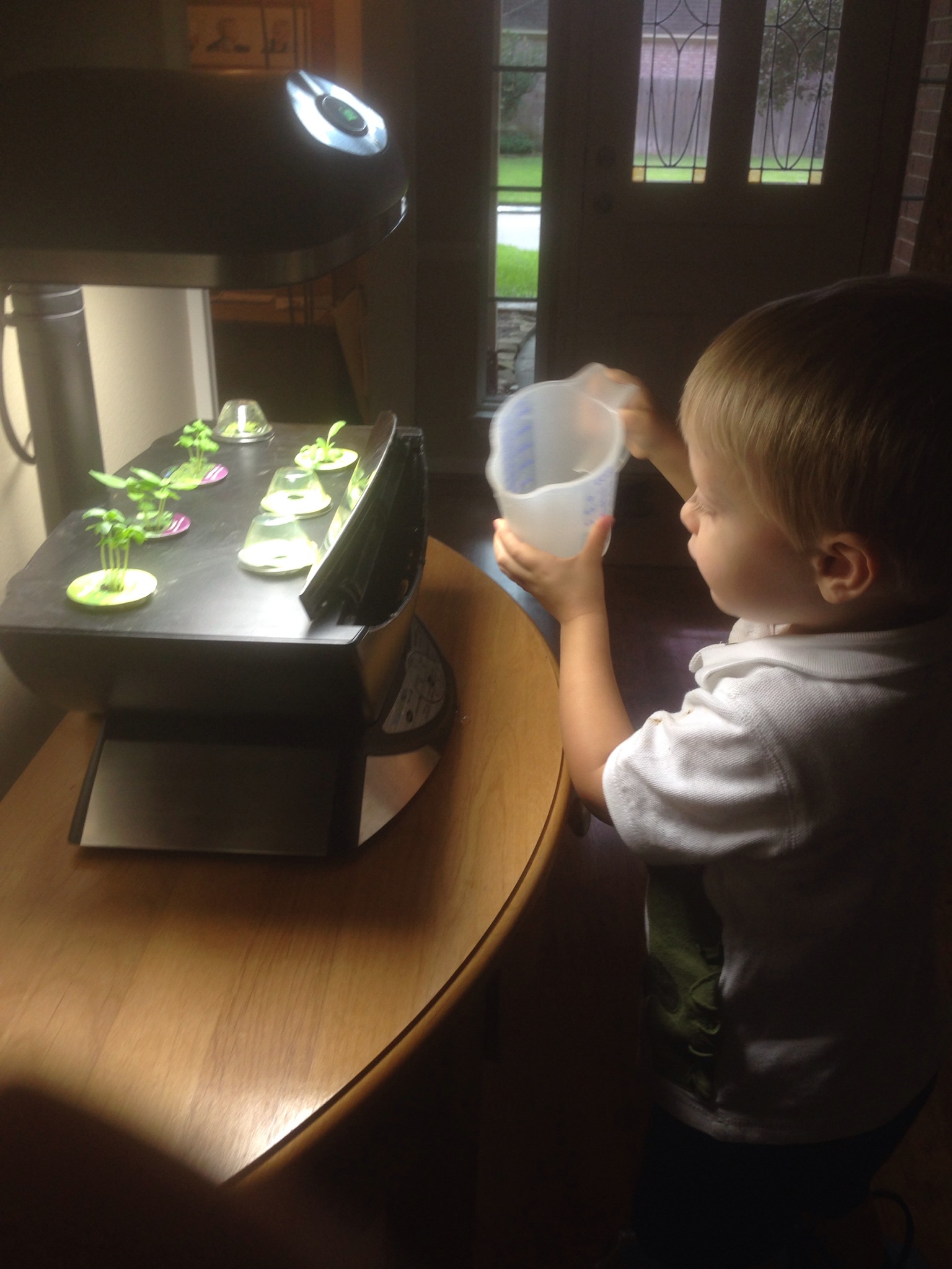 Colin helping with the plants Planted the aerogarden with some herbs. Colin is being very good about looking after the baby plants. Share this: Click to share on X (Opens in new window) X Click to share on Facebook (Opens in new window) Facebook Like Loading... Related
