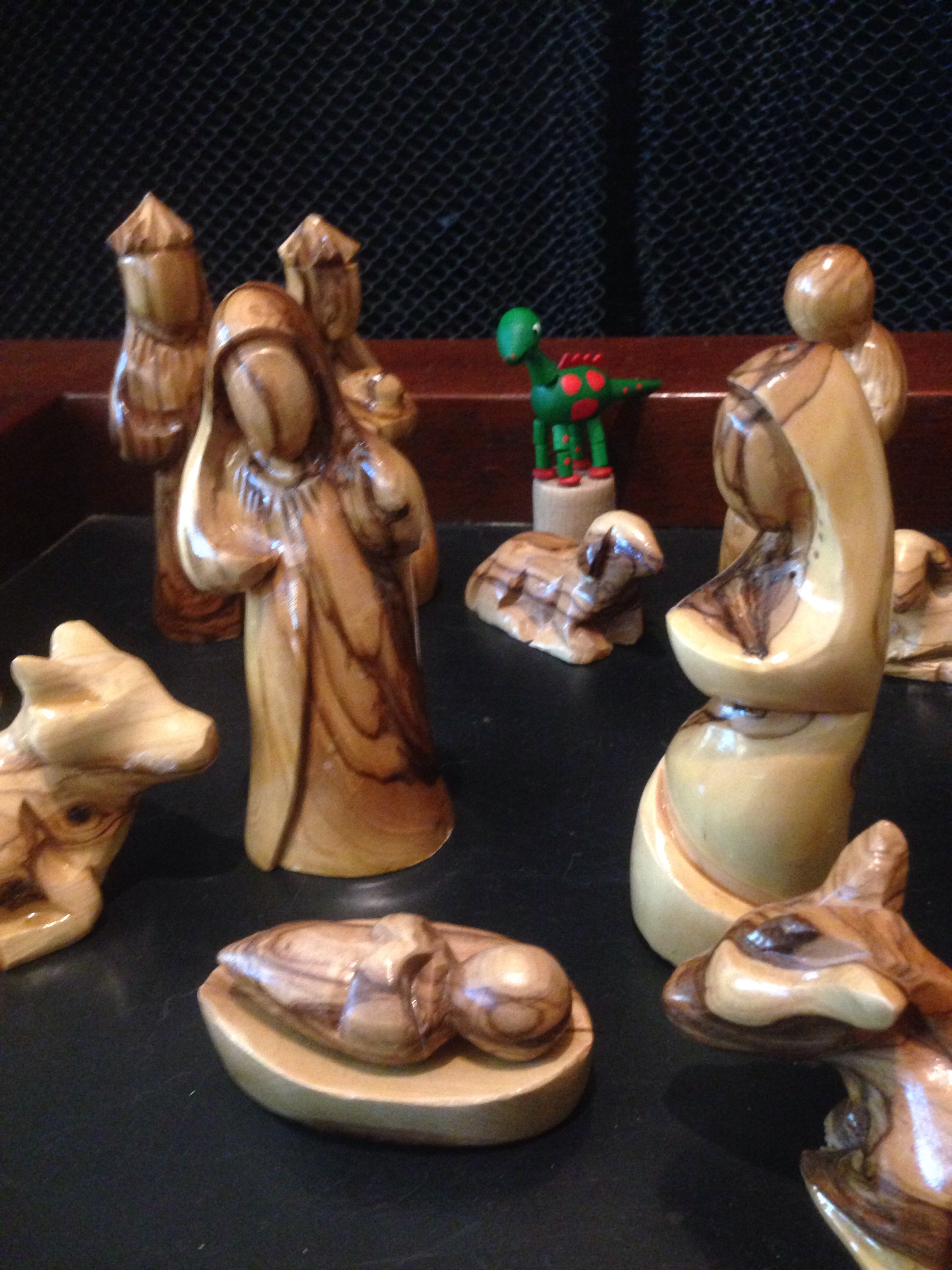 A complete nativity scene A picture from when I was setting up Christmas decorations. How do you know when the nativity scene is complete? The dinosaur arrives! Share this: Share on X (Opens in new window) X Share on Facebook (Opens in new window) Facebook Like Loading... Related