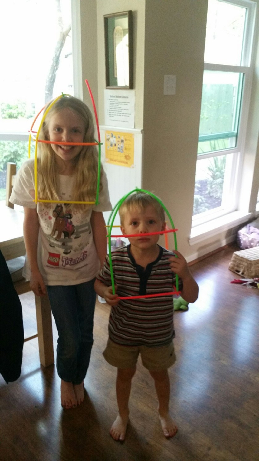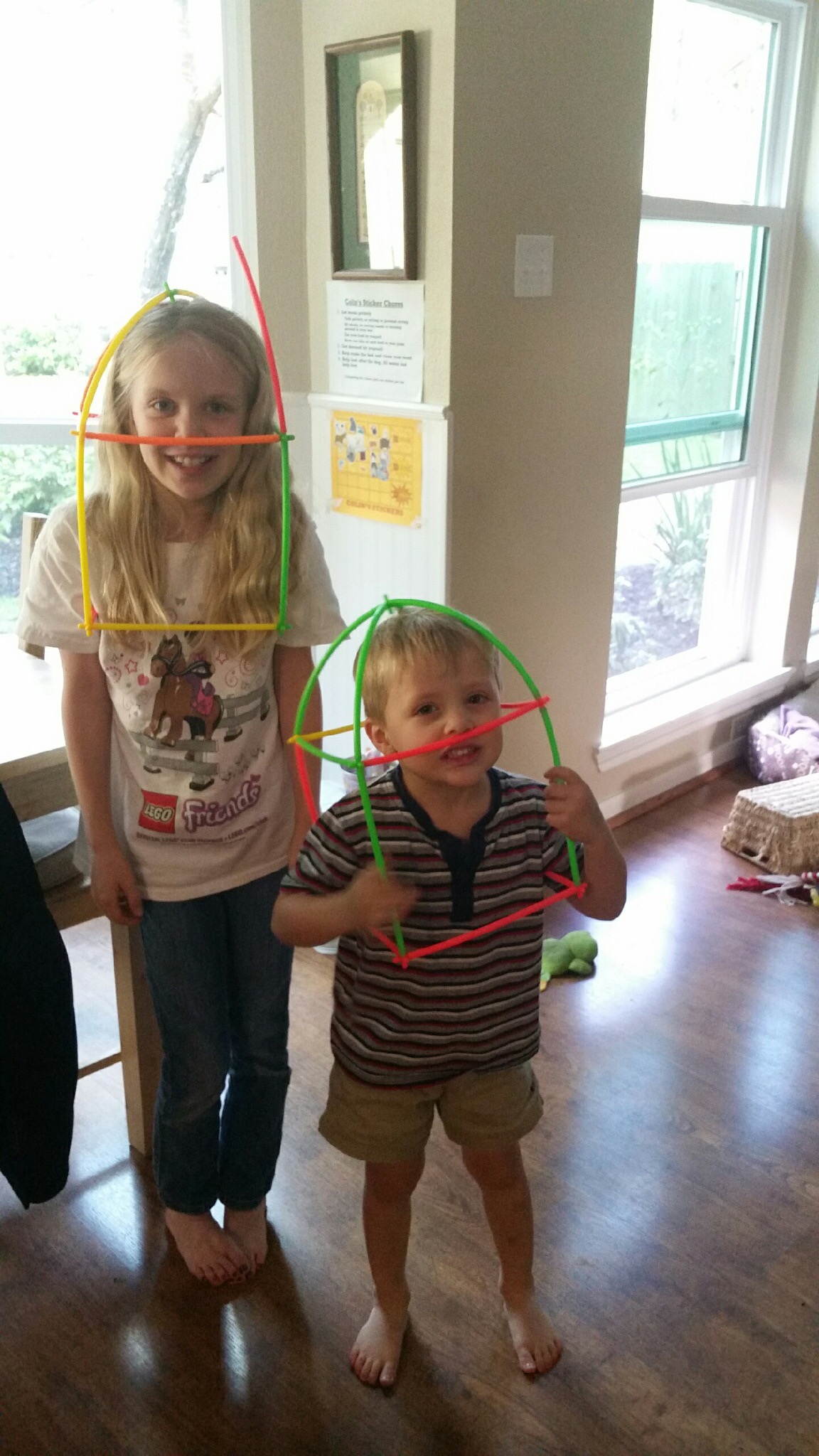 Creative building We left the kids with a babysitter last night and they made some hats, or helmets, or rockets, or something out of Colin’s crosses and straws building kit. Share this: Click to share on X (Opens in new window) X Click to share on Facebook (Opens in new window) Facebook Like Loading... Related