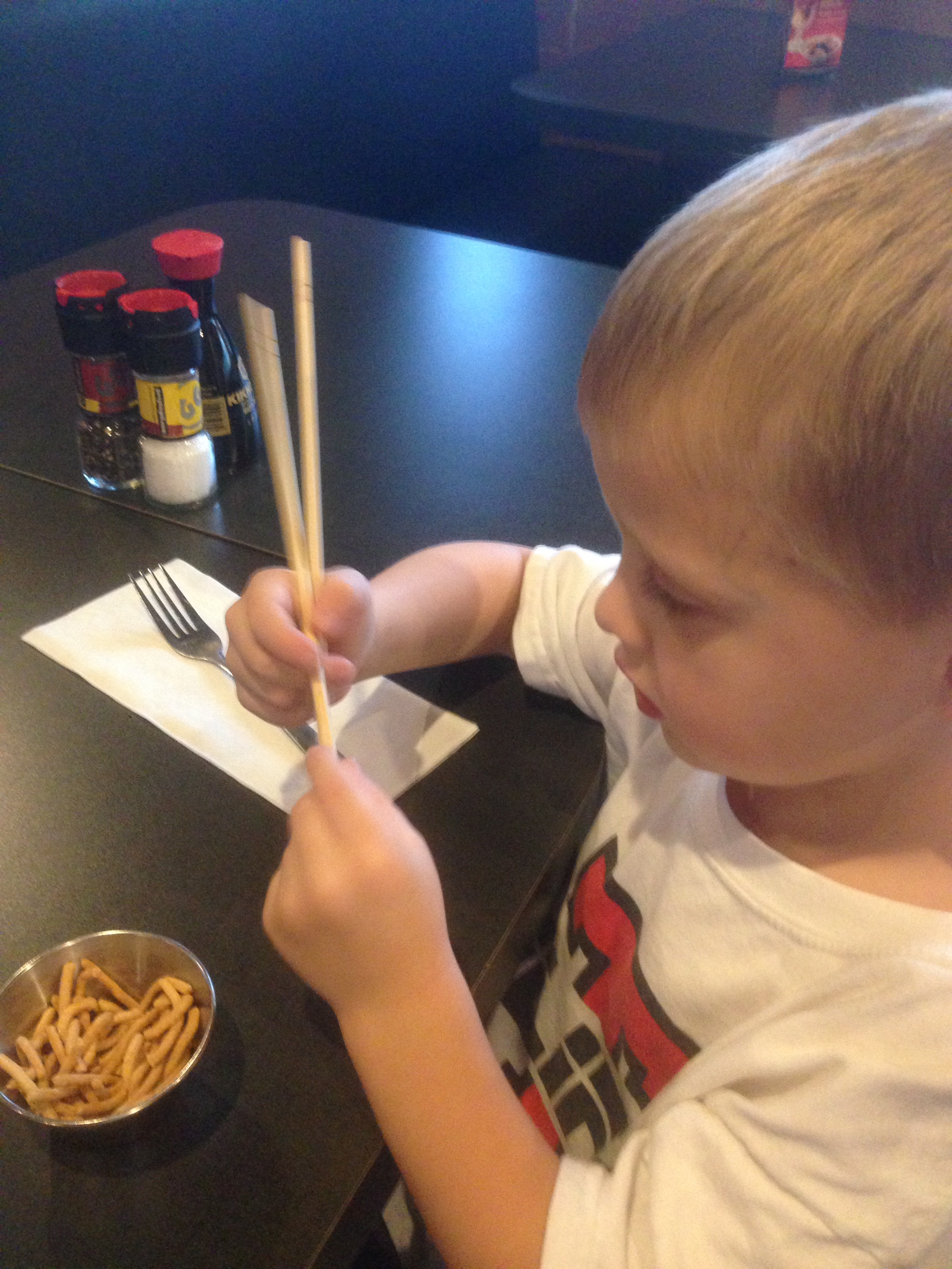 Trying Chopsticks Both kids gave chopsticks a try at supper last night. They were both happier with the FUNCHOP helpers installed. Share this: Click to share on X (Opens in new window) X Click to share on Facebook (Opens in new window) Facebook Like Loading... Related