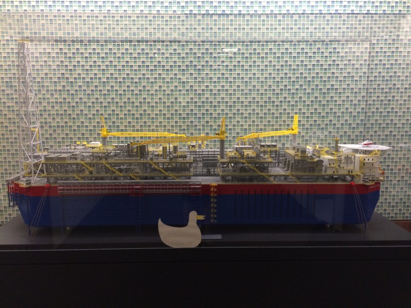 Luanda While visiting Angola, the duck took a few minutes to admire the model and learn about the Kizomba-A FPSO (floating production, storage, and offloading vessel). Share this: Click to share on X (Opens in new window) X Click to share on Facebook (Opens in new window) Facebook Like Loading... Related