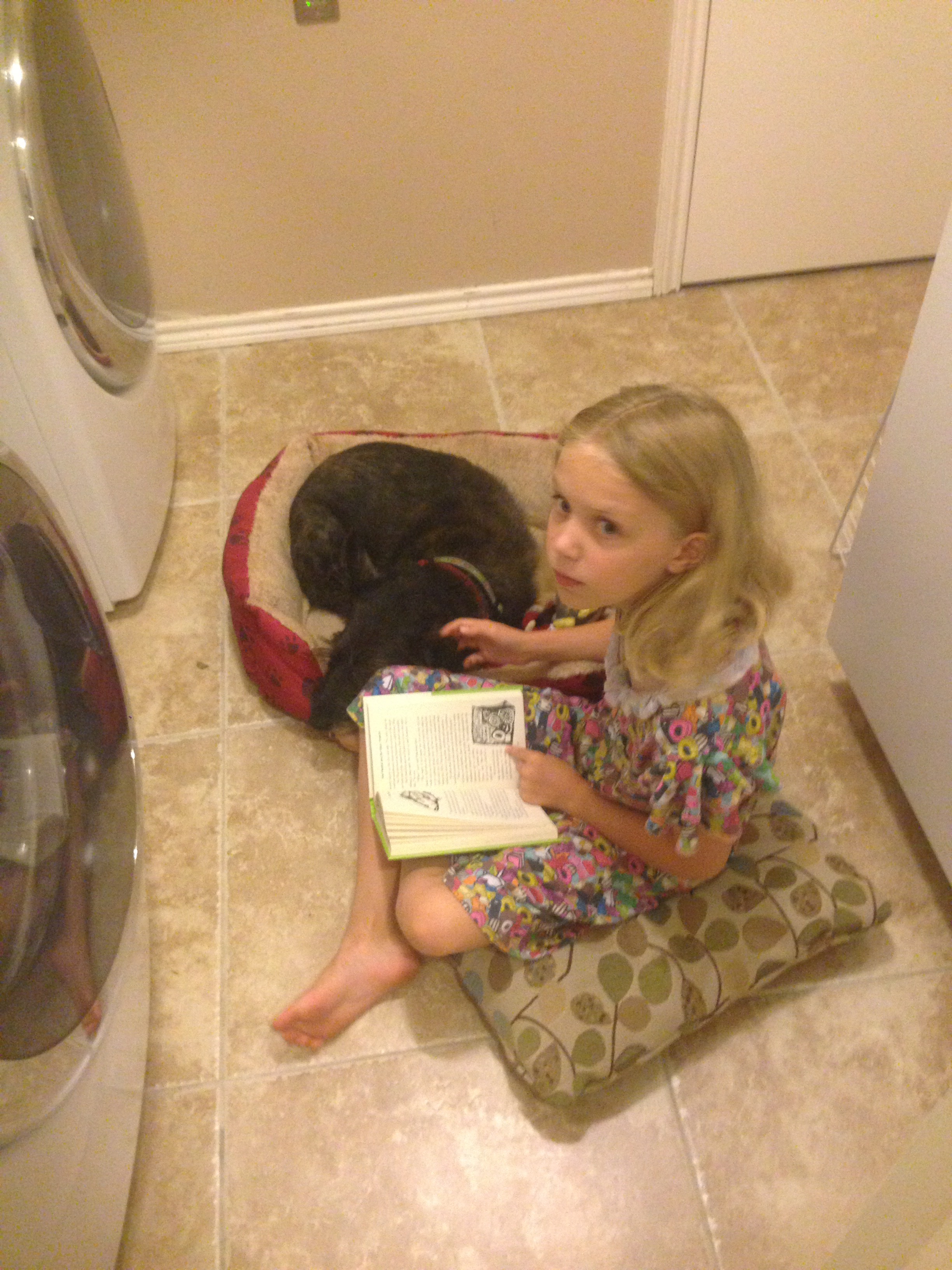 Thunderstorms MacDougall dislikes thunder and has found the laundry room to be the quietest hiding spot in he new house. Laura felt he shouldn’t be alone and sat with him through the worst of the storms. Share this: Click to share on X (Opens in new window) X Click to share on Facebook (Opens in new window) Facebook Like Loading... Related