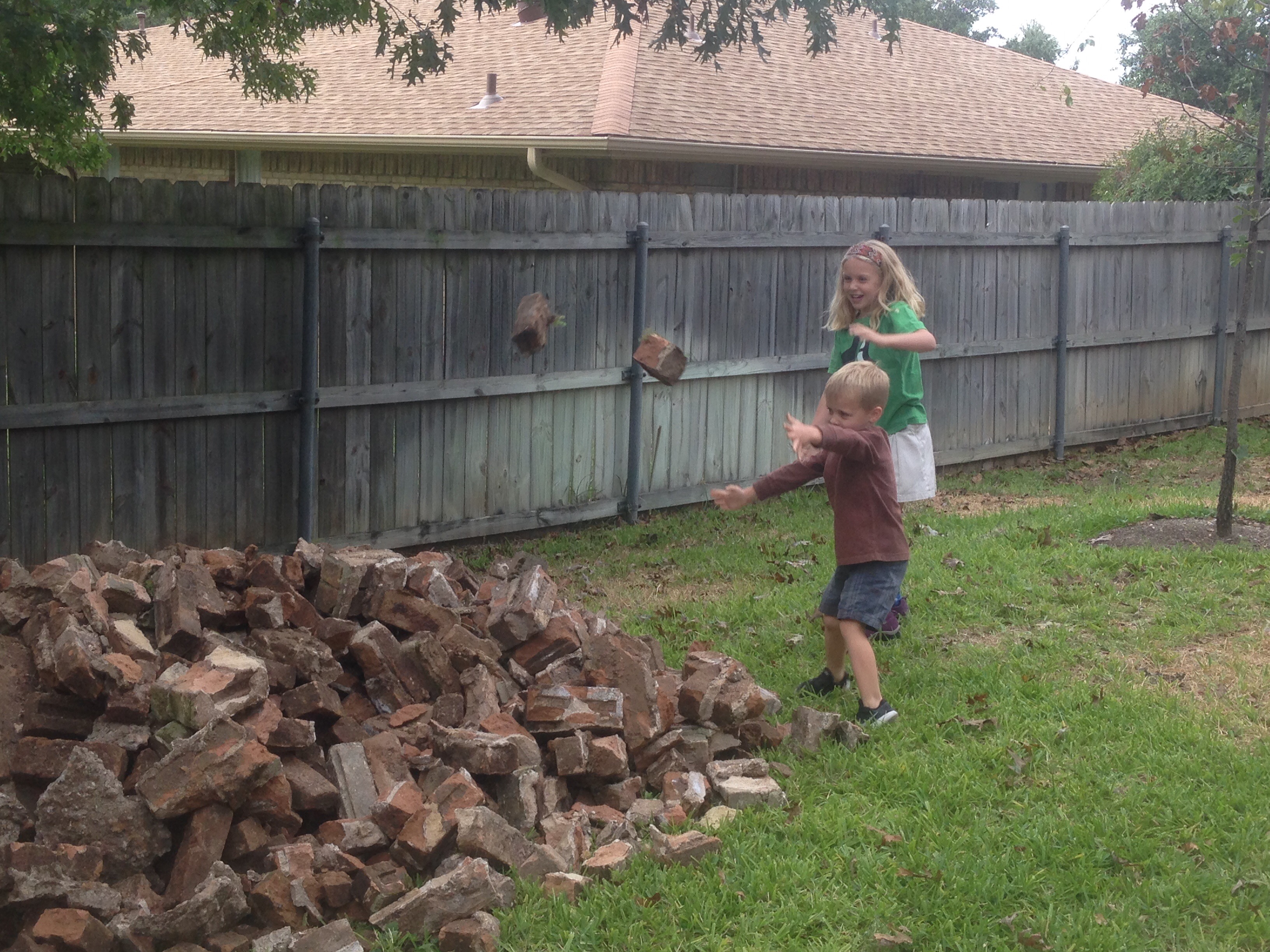 Throwing bricks How often has a parent ever asked a kid to throw bricks? The kids were happy to help. Share this: Click to share on X (Opens in new window) X Click to share on Facebook (Opens in new window) Facebook Like Loading... Related
