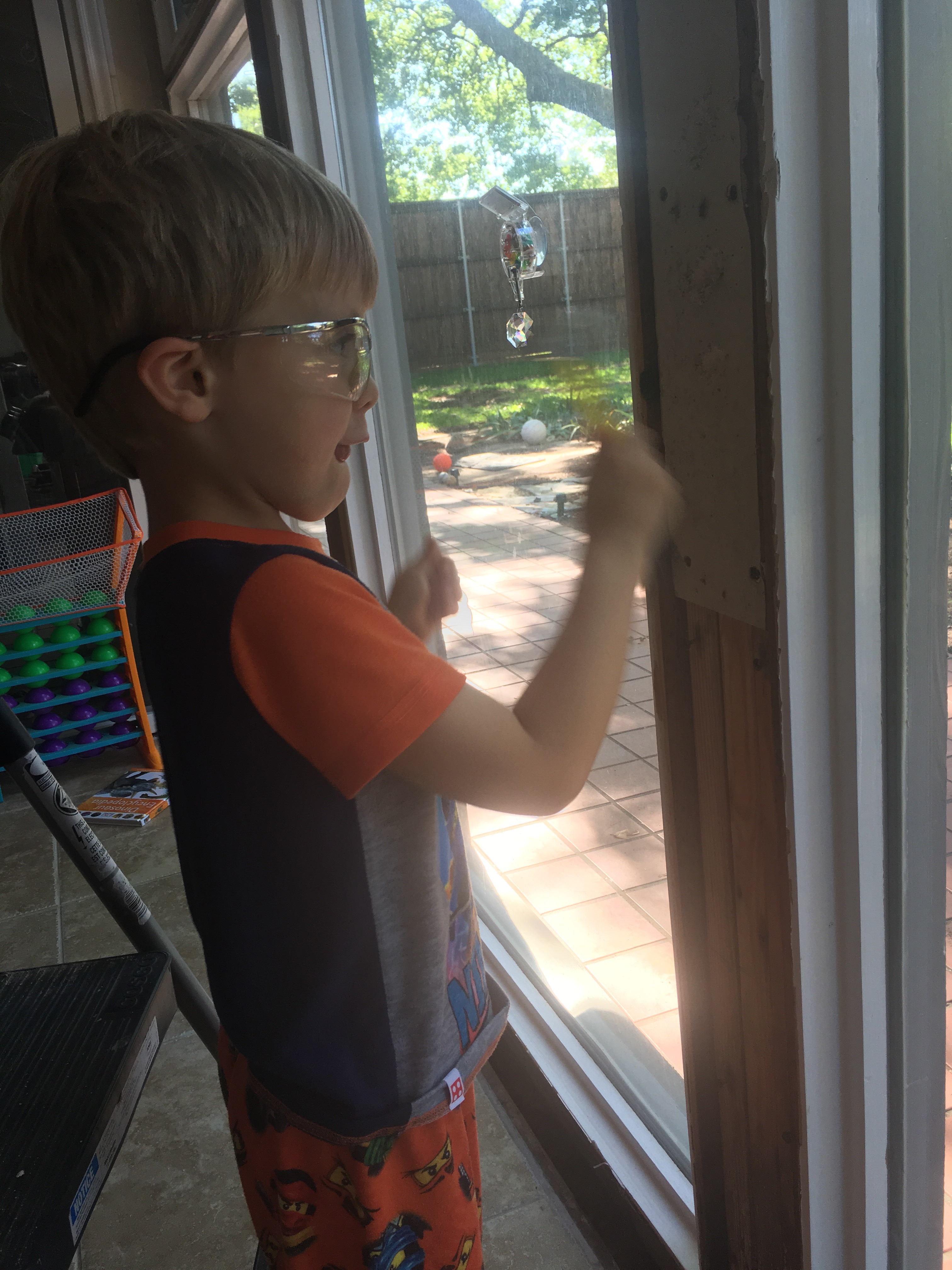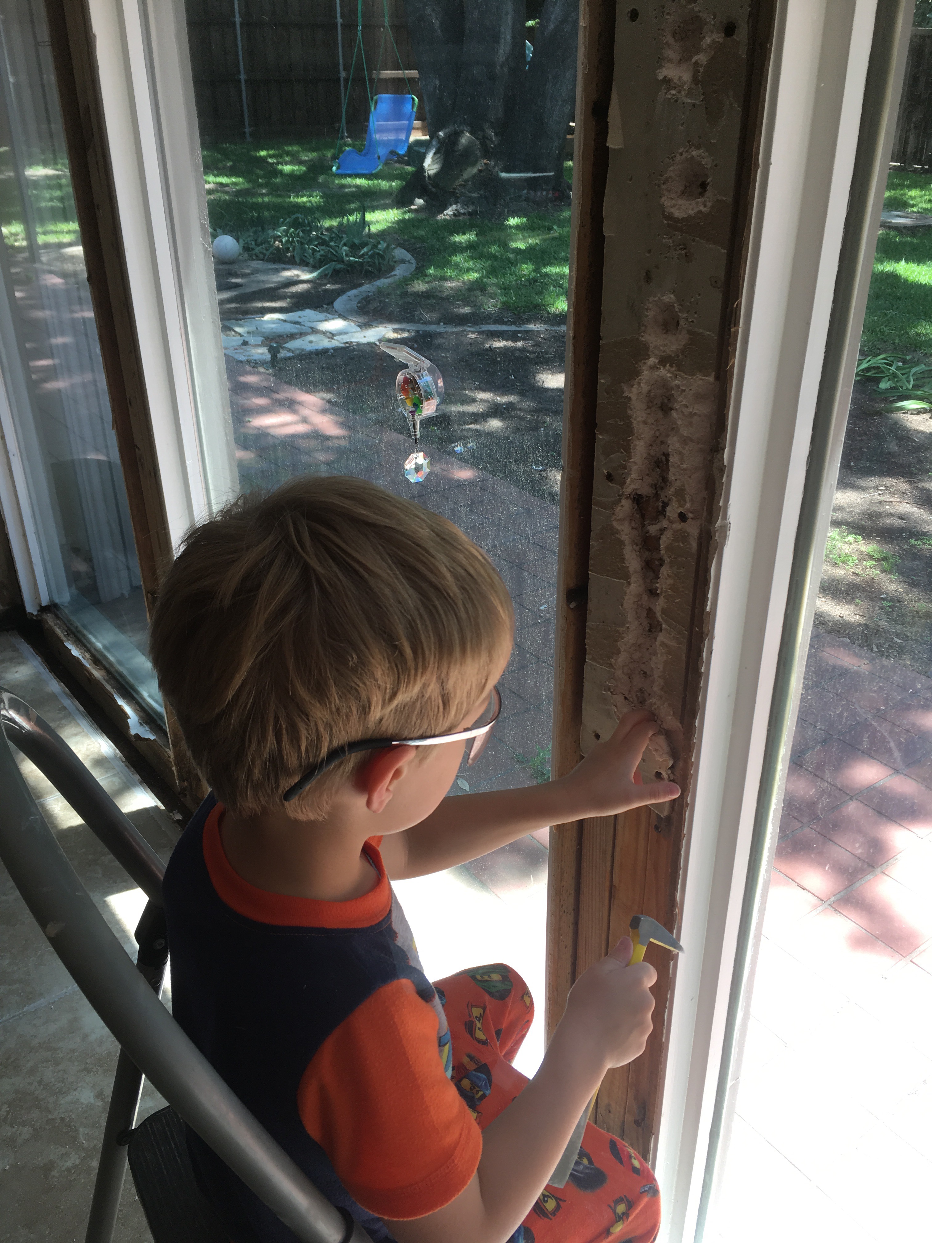 Mining Cliff has removed some walls. Colin has been having a blast “mining” a remaining piece of drywall with a tiny pry bar. It kept him entertained long enough for Cliff to get the rest of the work done! Share this: Click to share on X (Opens in new window) X Click to share on Facebook (Opens in new window) Facebook Like Loading... Related