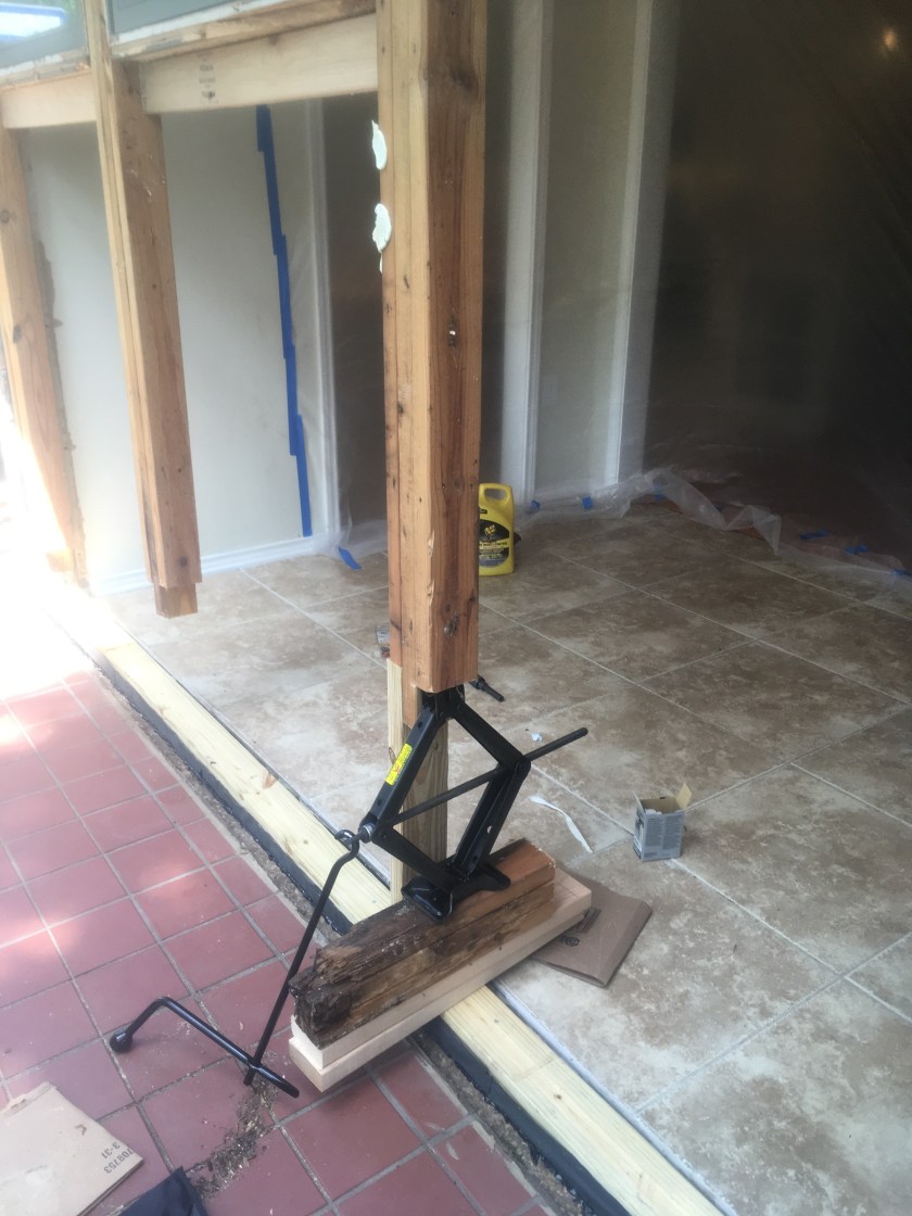 We have taken away all the rotten wood, rebuilt the supports, leveled everything and are sealed for now waiting on the windows to be made.