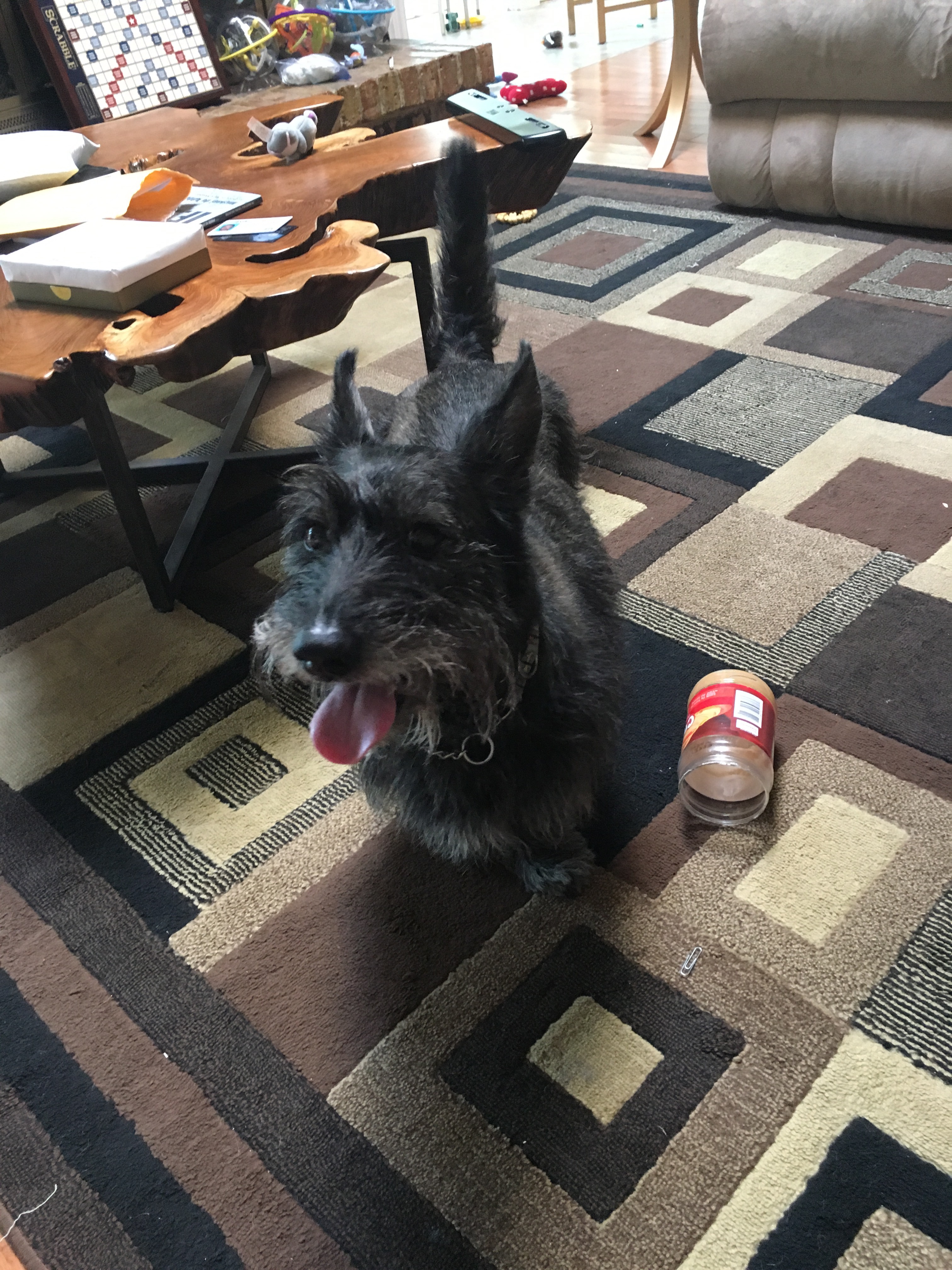 MacDougall is one happy boy when he gets to clean out the old peanut butter jar! He wishes his tongue was longer so he could reach the bottom!