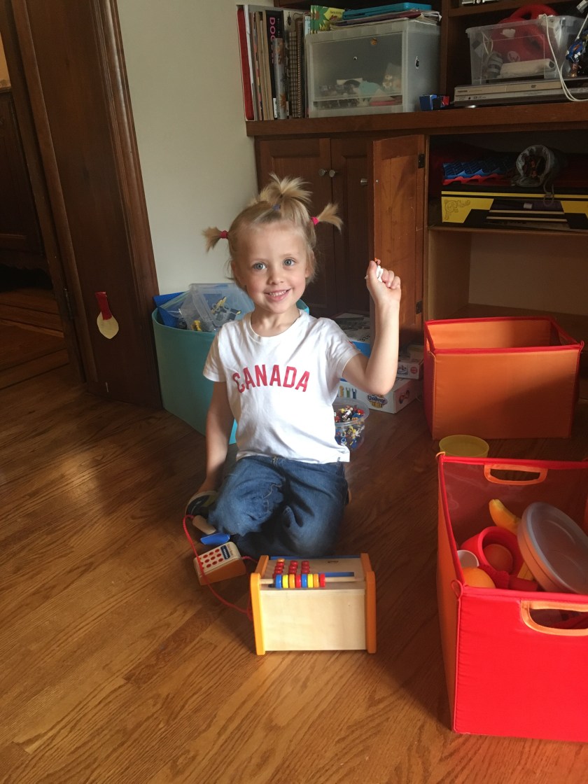 Colin played Store, and was happy to have his hair in pigtails. He is intent on growing it out and it’s at a terrible length right now! We’ll do just about anything to keep it off his eyes!