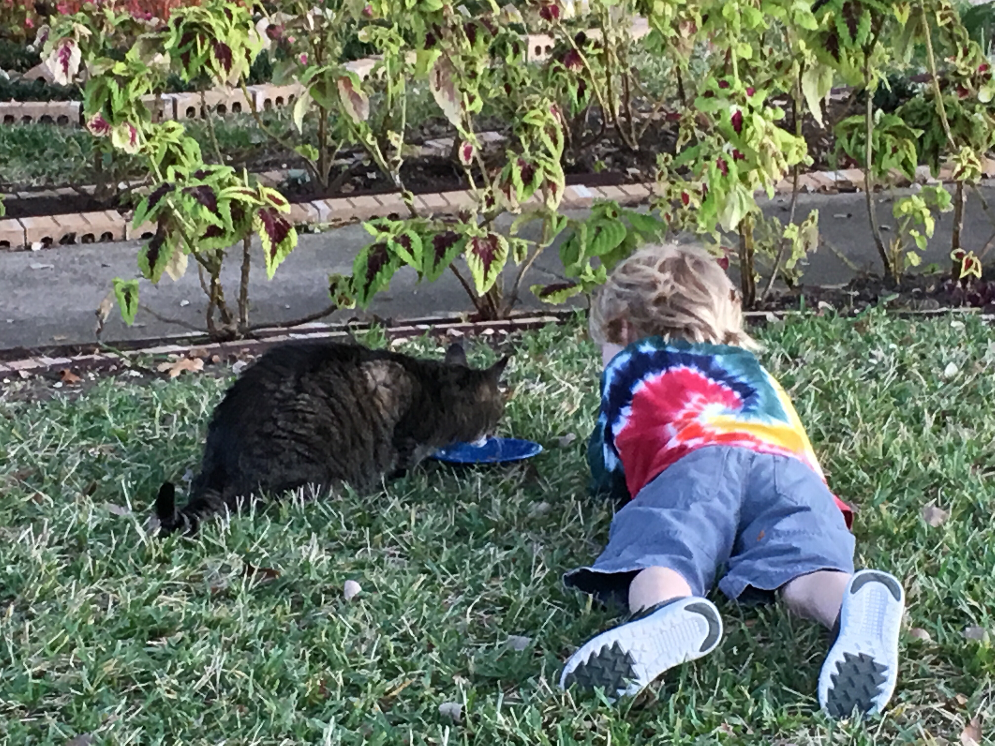 Colin with the neighbors cat Colin headed out the door today to hang out with the neighbors across the street, and their cat Napoleon too. Share this: Click to share on X (Opens in new window) X Click to share on Facebook (Opens in new window) Facebook Like Loading... Related