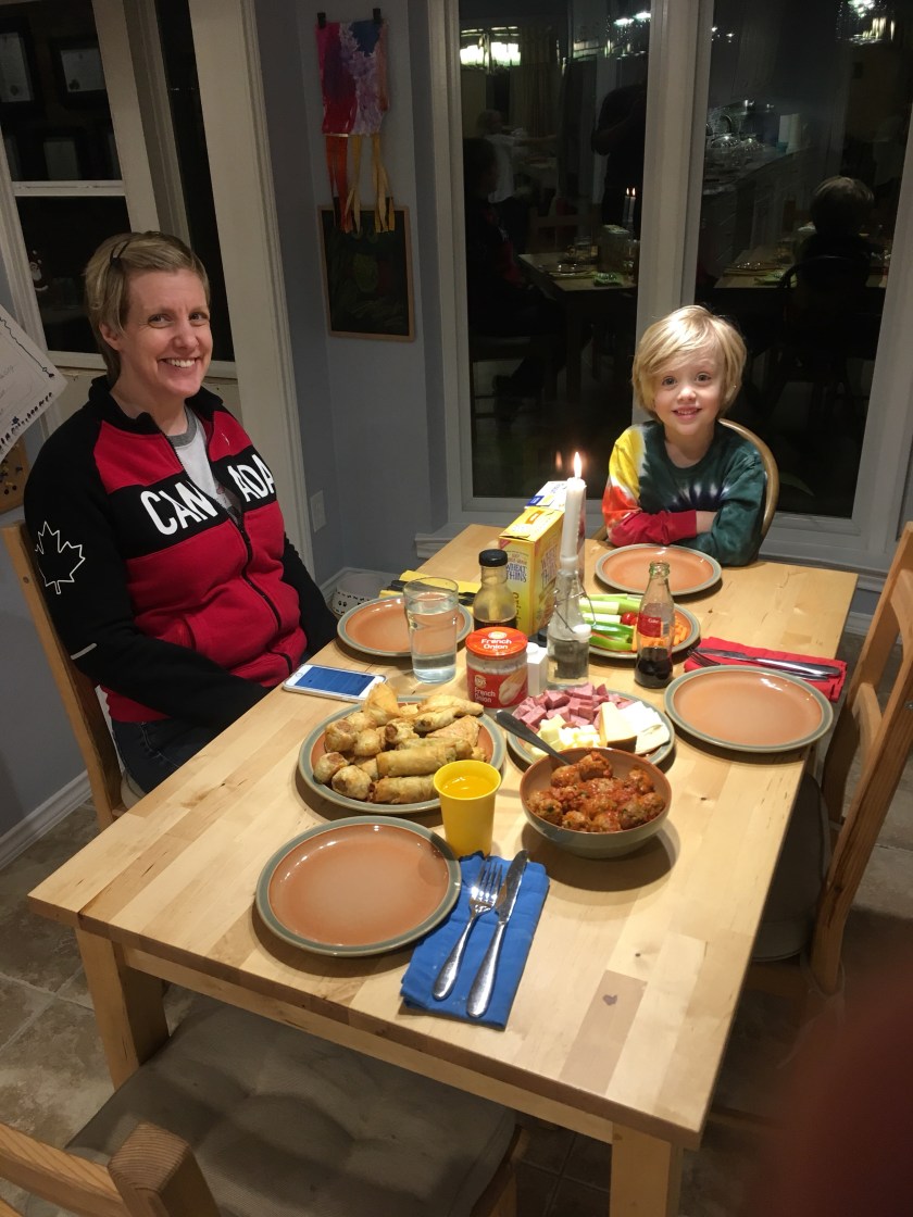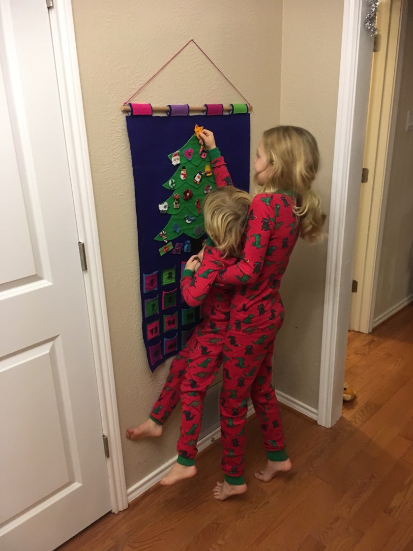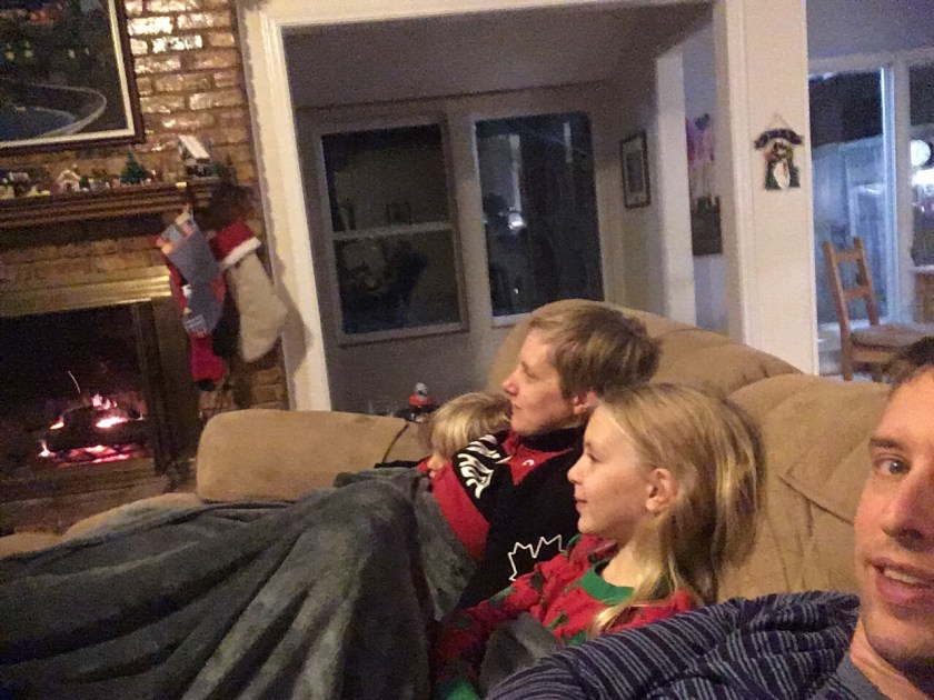 Christmas Eve included appetizer supper, putting the star on the top of the Christmas tree advent calendar, and watching Mr Bean in new jammies.