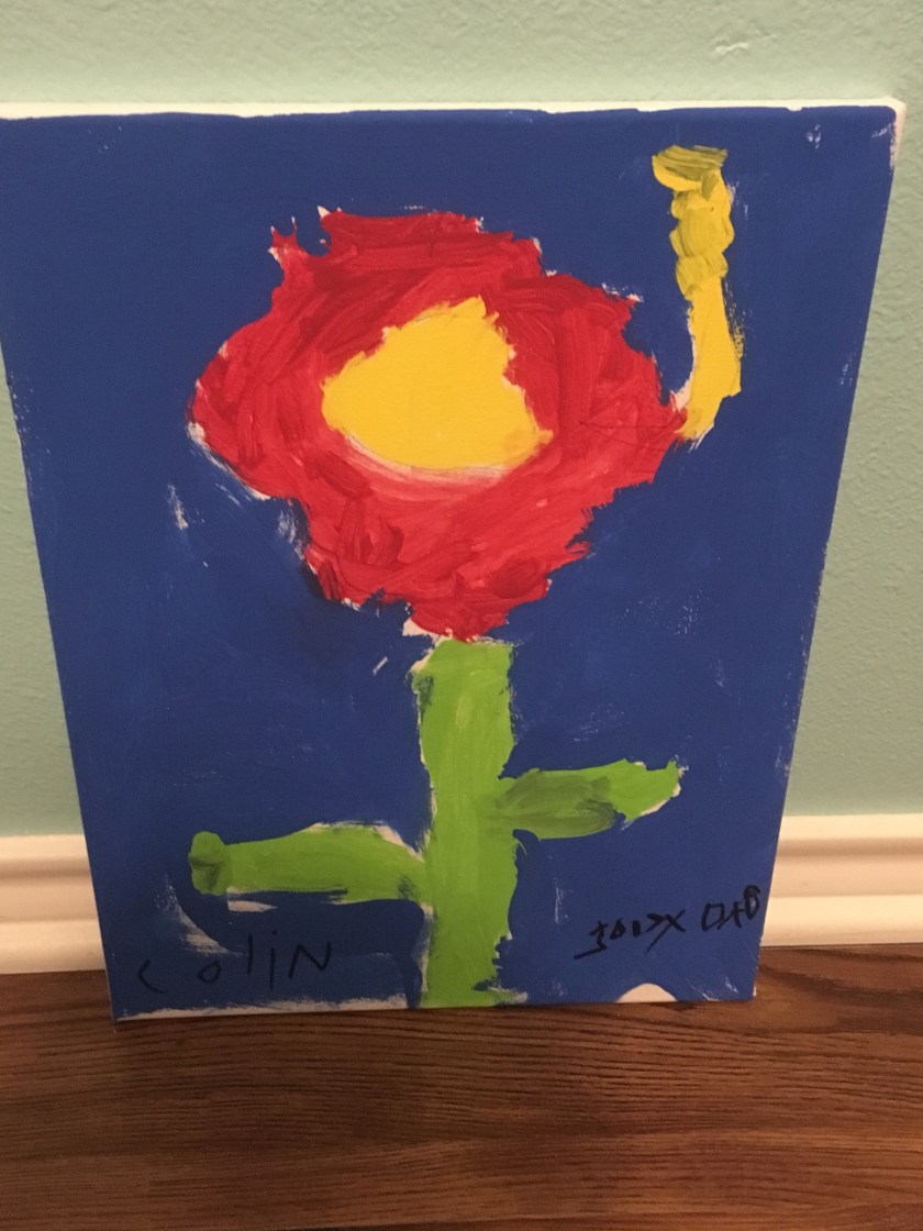 Colin painted a picture of a flower underwater (you can tell because of the snorkel it needed)