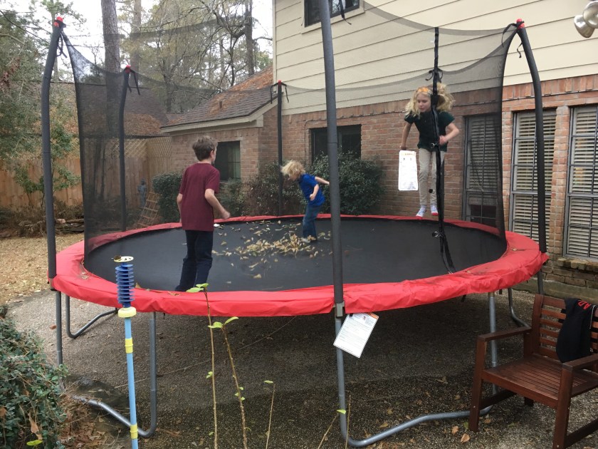 It’s been a little cooler here than normal (below freezing for almost a week). Today the temperature went up enough to melt the ice on the trampoline at a friends house.