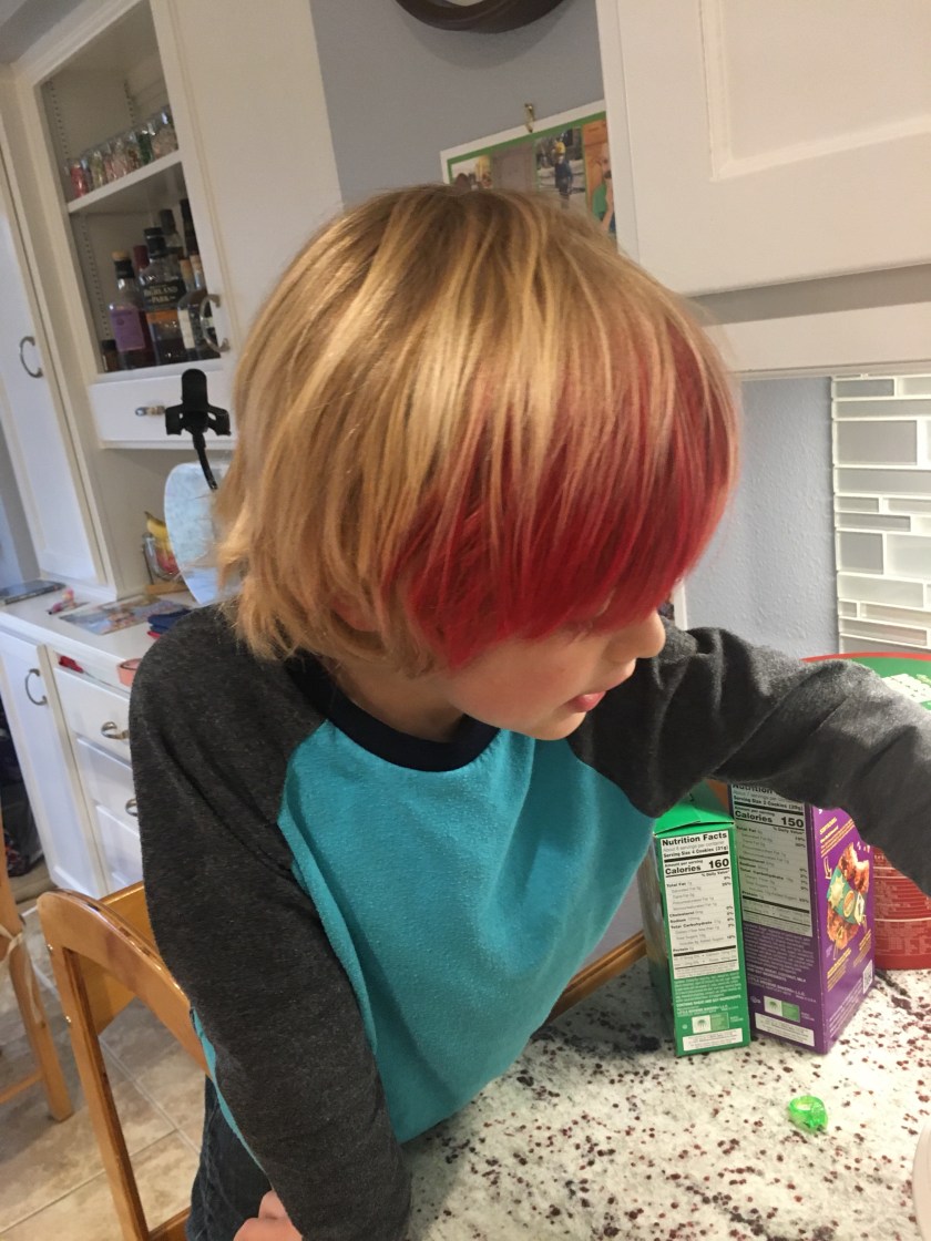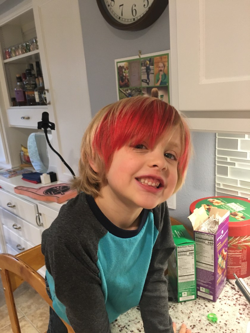 Team Canada Colin wanted red in his hair today so he can show his support for Canada during the Olympics. Share this: Click to share on X (Opens in new window) X Click to share on Facebook (Opens in new window) Facebook Like Loading... Related