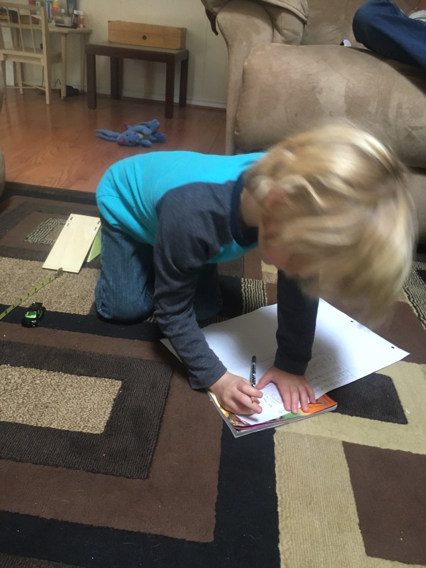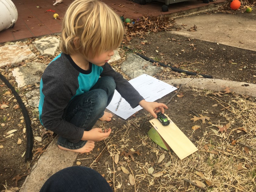 Colin’s science project. Colin is seeing how far a car rolls on different surfaces. Share this: Click to share on X (Opens in new window) X Click to share on Facebook (Opens in new window) Facebook Like Loading... Related
