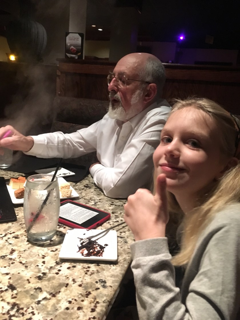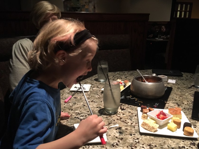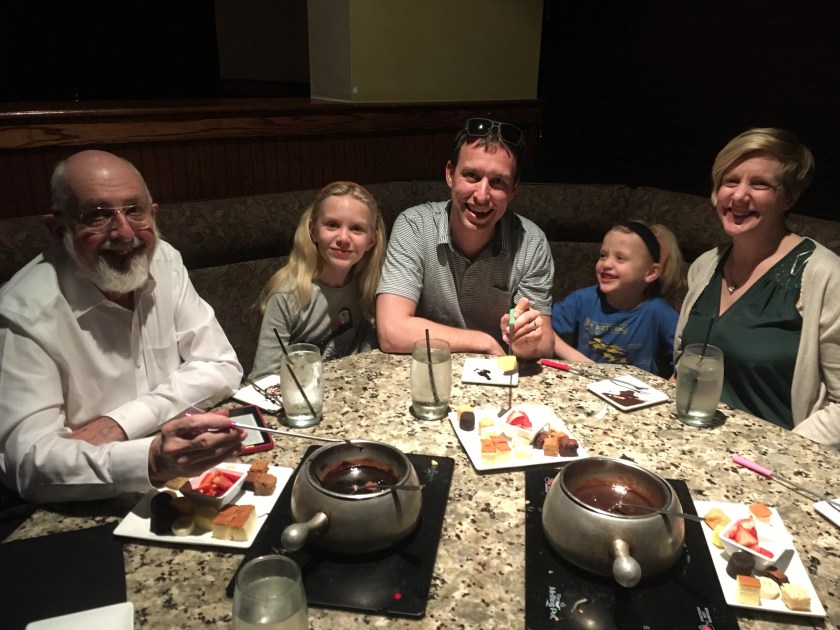 The only meal Grandpa asked for on his visit was fondue. So we went out for a three fondue meal. Cheese, broth, and chocolate.