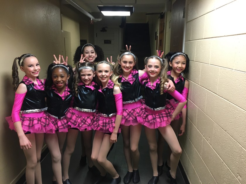 Laura was in her first dance competition on Saturday. Her team did a great job! Here they are posing before and after they performed.