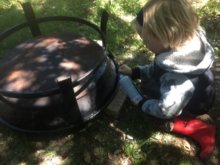 Spray Paint The kids helped spruce up the yard by putting a new layer of paint on the firepit. Share this: Click to share on X (Opens in new window) X Click to share on Facebook (Opens in new window) Facebook Like Loading... Related