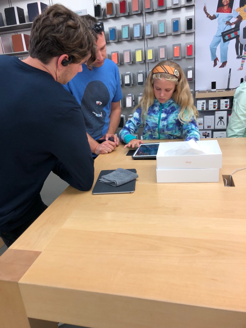 Laura needs to have her own iPad for school. We went shopping today and she selected the iPad and case, and they helped her set it all up.