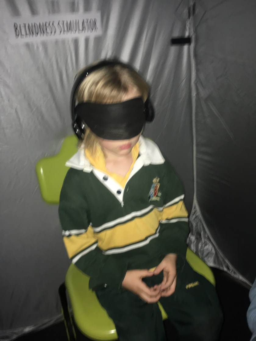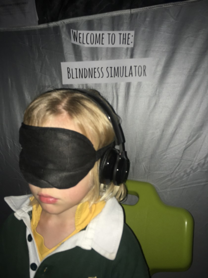 One of the projects that Laura’s class mates did was on Vision. Hey created a “Blindness Simulator” that played 3d sounds while sitting in a dark tent wearing a blindfold.