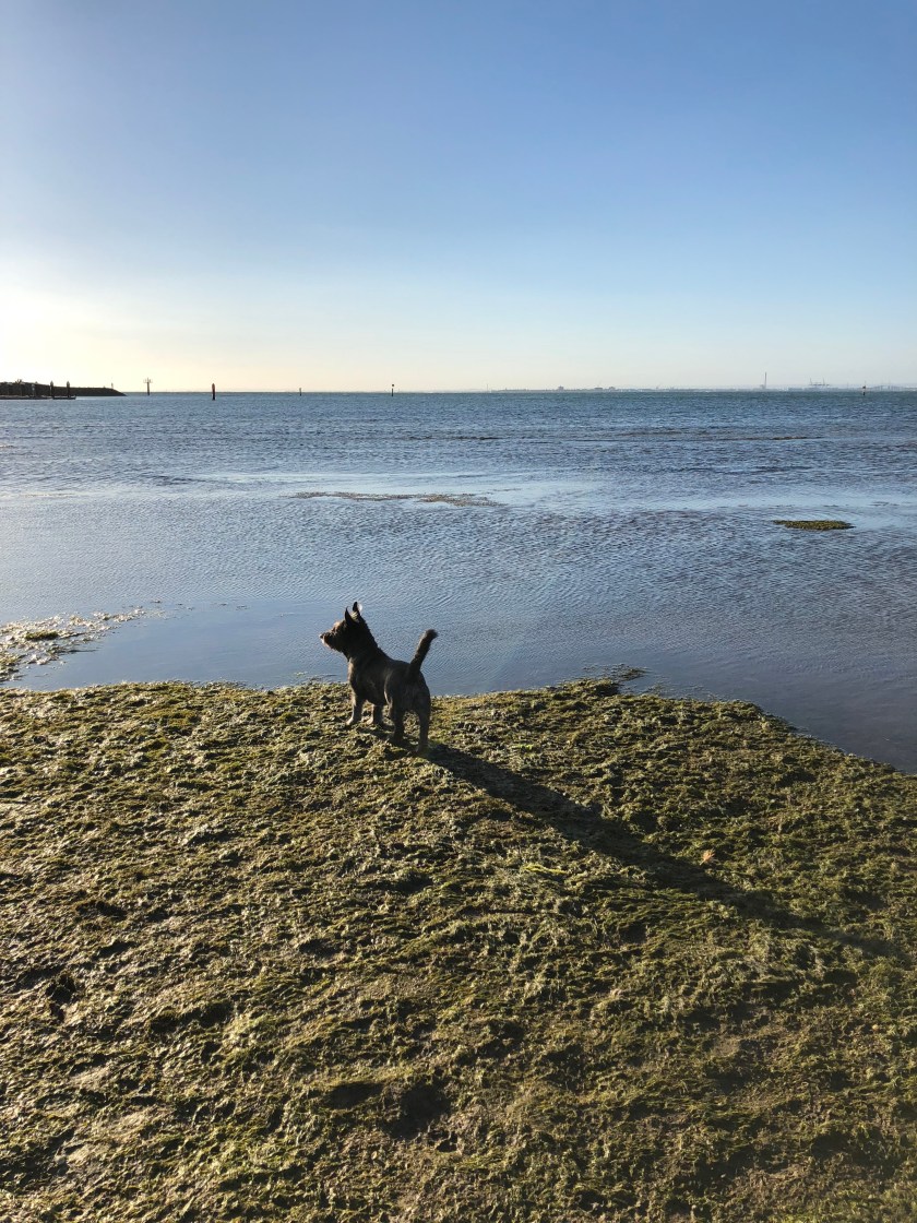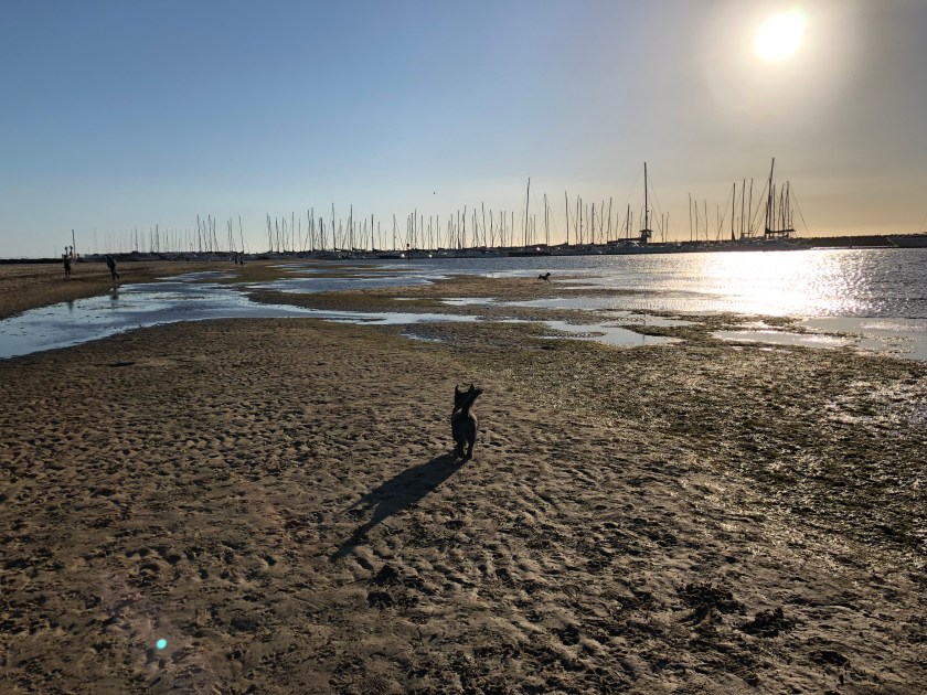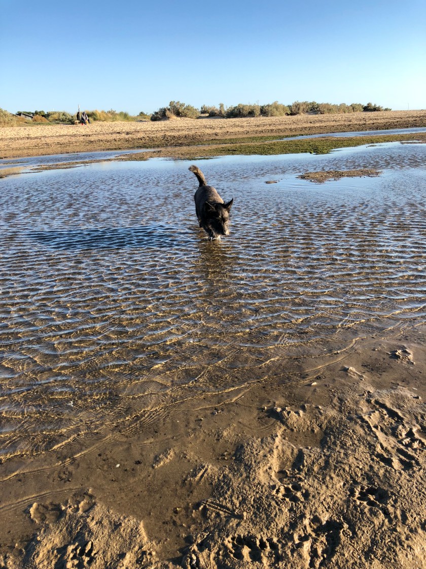 MacDougall and I walked up the path to the off-leash dog beach while the kids were at a playground tonight. He was pretty impressed, although still not too sure what to do in water.
