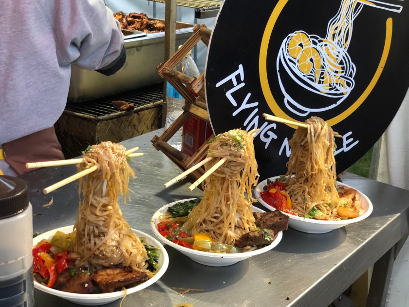Cliff and I went to the Night Noodle Market and enjoyed lots of delicious Asian foods. We had bao, gyoza, Peking duck pancakes, noodles, and a lovely raspberry-lychee cake. Yum!