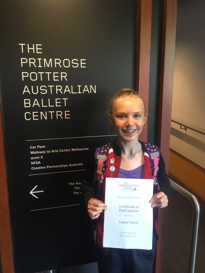 Laura finished her last of 5 days of dance camp at Australia Ballet Company Dance School.
