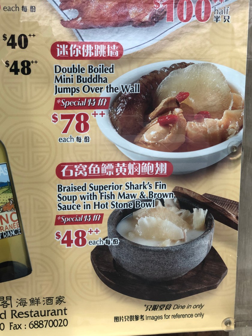 A taste sensation, no doubt. Spotted in Singapore: When single boiled mini Buddha jumps over the wall just won’t do. Share this: Click to share on X (Opens in new window) X Click to share on Facebook (Opens in new window) Facebook Like Loading... Related