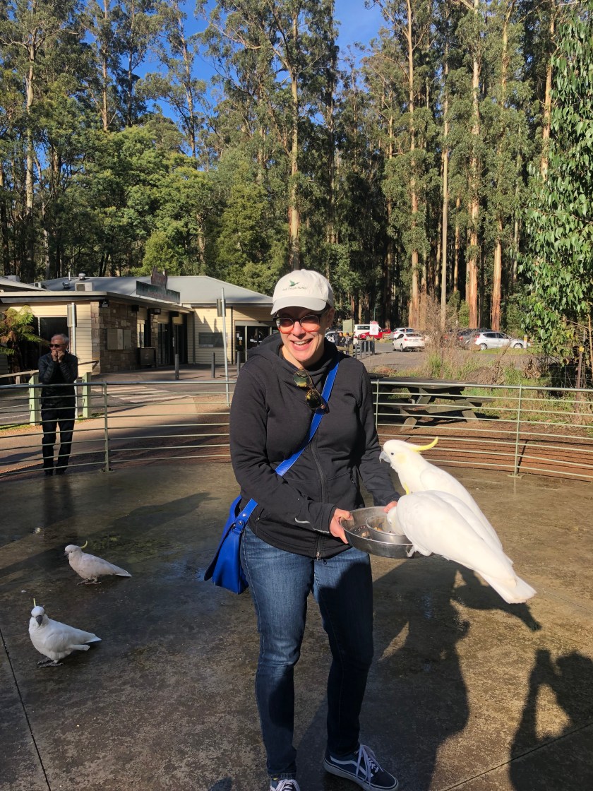 Cockatoos! It’s always fun to go to the Dandenongs and feed the cockatoos. Auntie Cathy agrees. Share this: Click to share on X (Opens in new window) X Click to share on Facebook (Opens in new window) Facebook Like Loading... Related