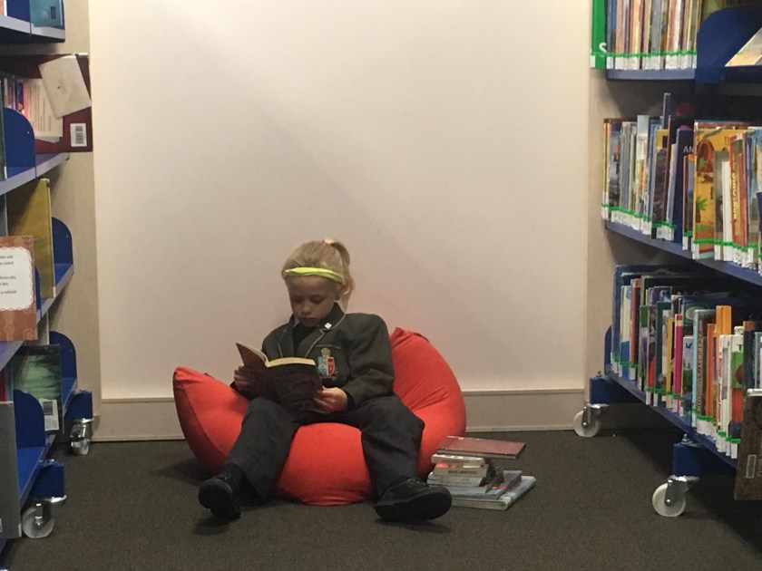 Thursday afternoon often involve a trip to the library for Colin while we wait for L to do dance class. It is one of his happy places.