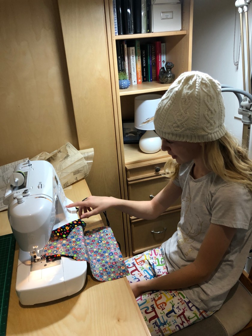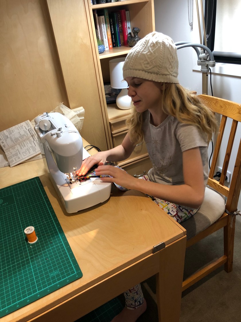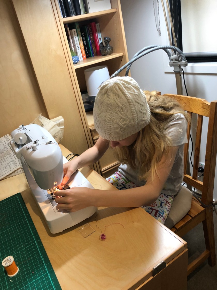 After successfully finishing up the bedding for her doll, Laura is now tackling a pillowcase dress and leggings – also for her doll.