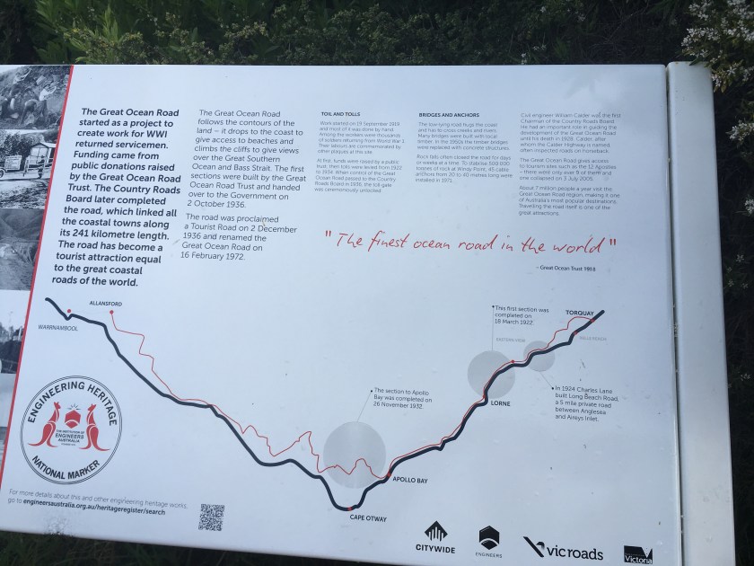 We learned this past weekend that The Great Ocean Road is a memorial to WWI.
