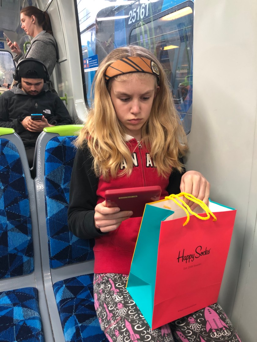 These kids know how to commute We took the train into the city to run errands. No boredom here! Share this: Click to share on X (Opens in new window) X Click to share on Facebook (Opens in new window) Facebook Like Loading... Related