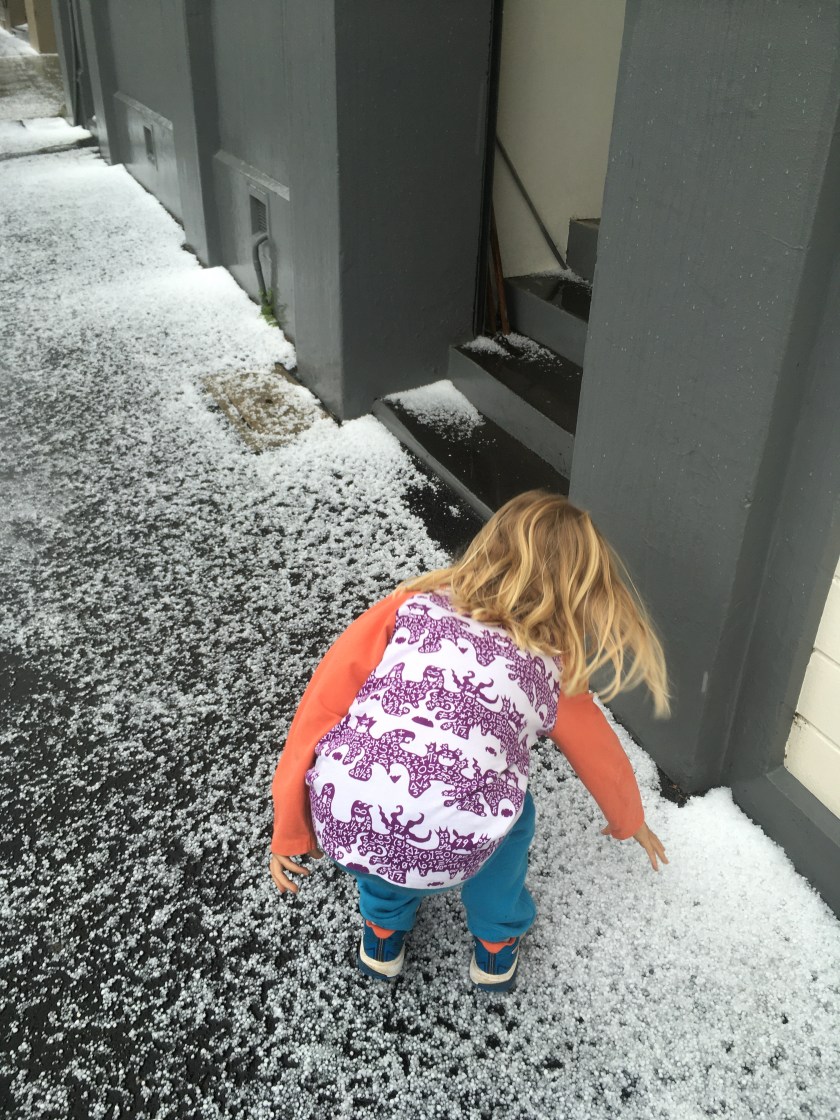 Last Friday there were localized hail showers through the city. Colin and I came out of an appointment and found lots of hail!