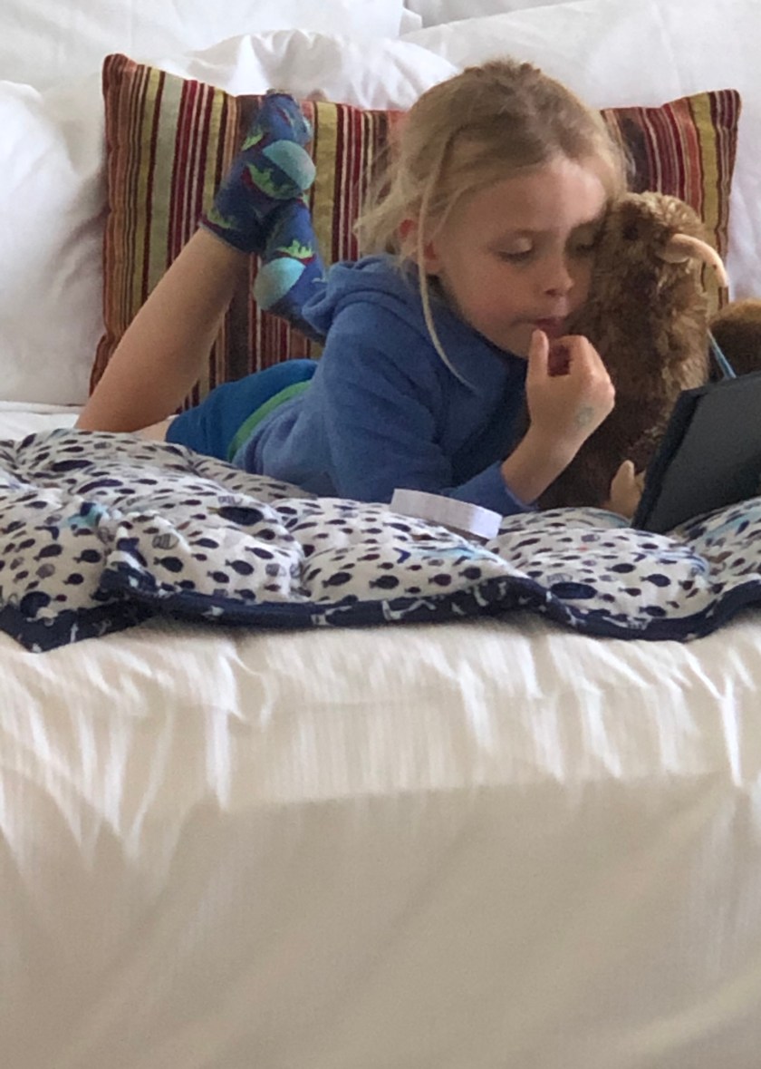 Colin inevitably chooses stuffies as his souvenirs when we travel. Coco the Kiwi (maybe it’s Koko?) joined us today and Colin has already started teaching her to read.