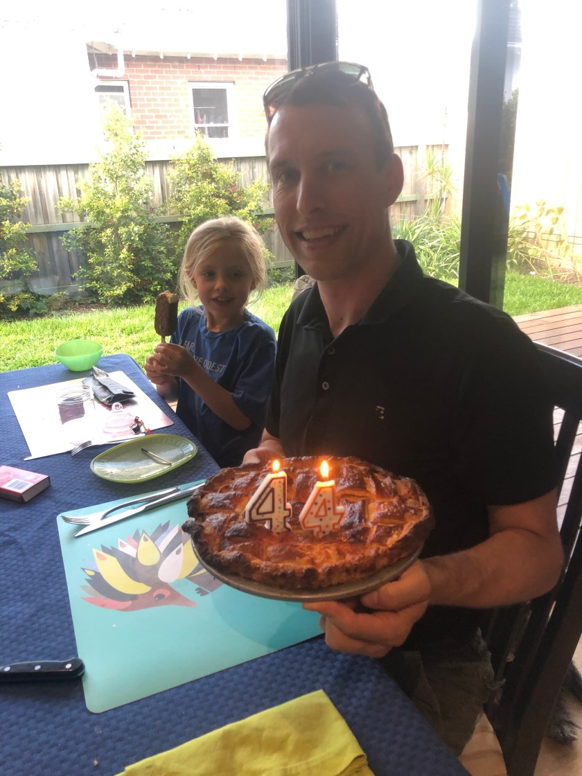 Rhubarb and custard pie for the birthday boy. I still haven’t got the recipe right – the custard isn’t thickening up – but at least it tastes good.