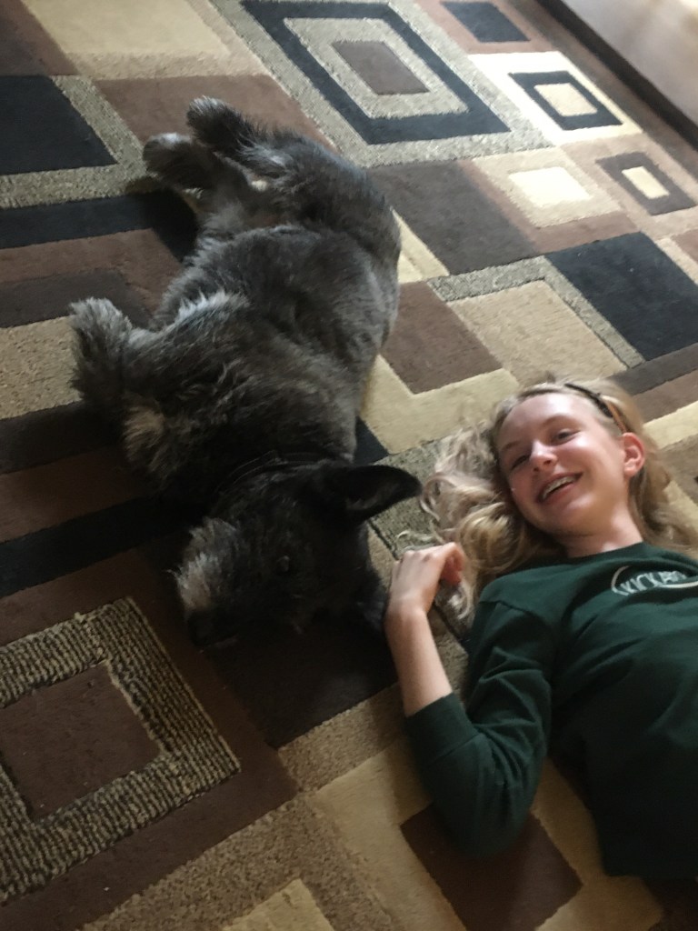 MacDougall is enjoying having everyone at home with him. He’ll happily curl up next to you or flake out with you on the floor.