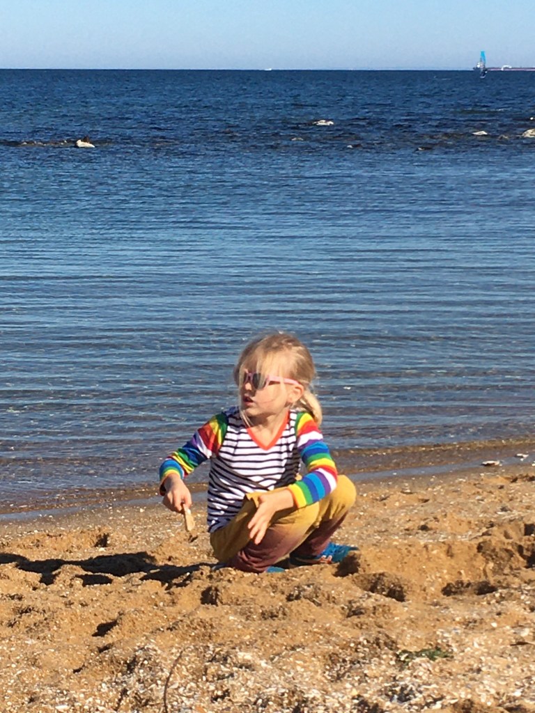We had one stopover at a lovely airport (beach), that had a sandy play area just outside. We had some fun skipping stones before our second “flight”.