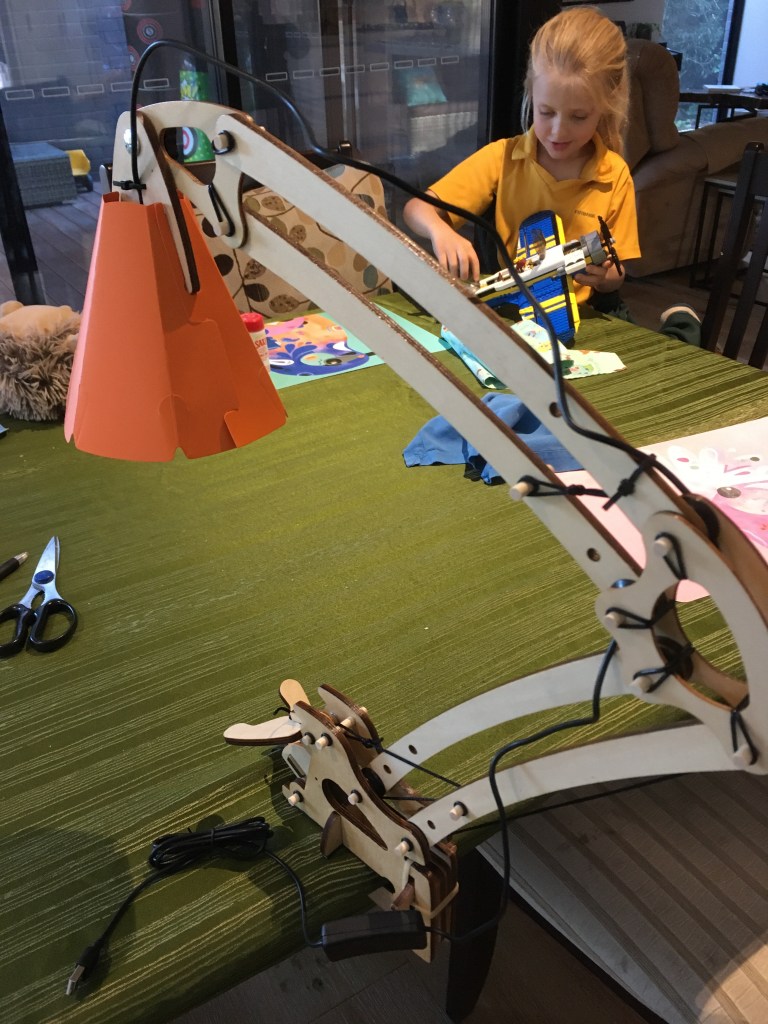 Laura’s Eureka Crate Articulating Lamp Build Laura was very proud of building her lamp this month from her Eureka Crate. It’s now installed on her bedside table. Share this: Click to share on X (Opens in new window) X Click to share on Facebook (Opens in new window) Facebook Like Loading... Related