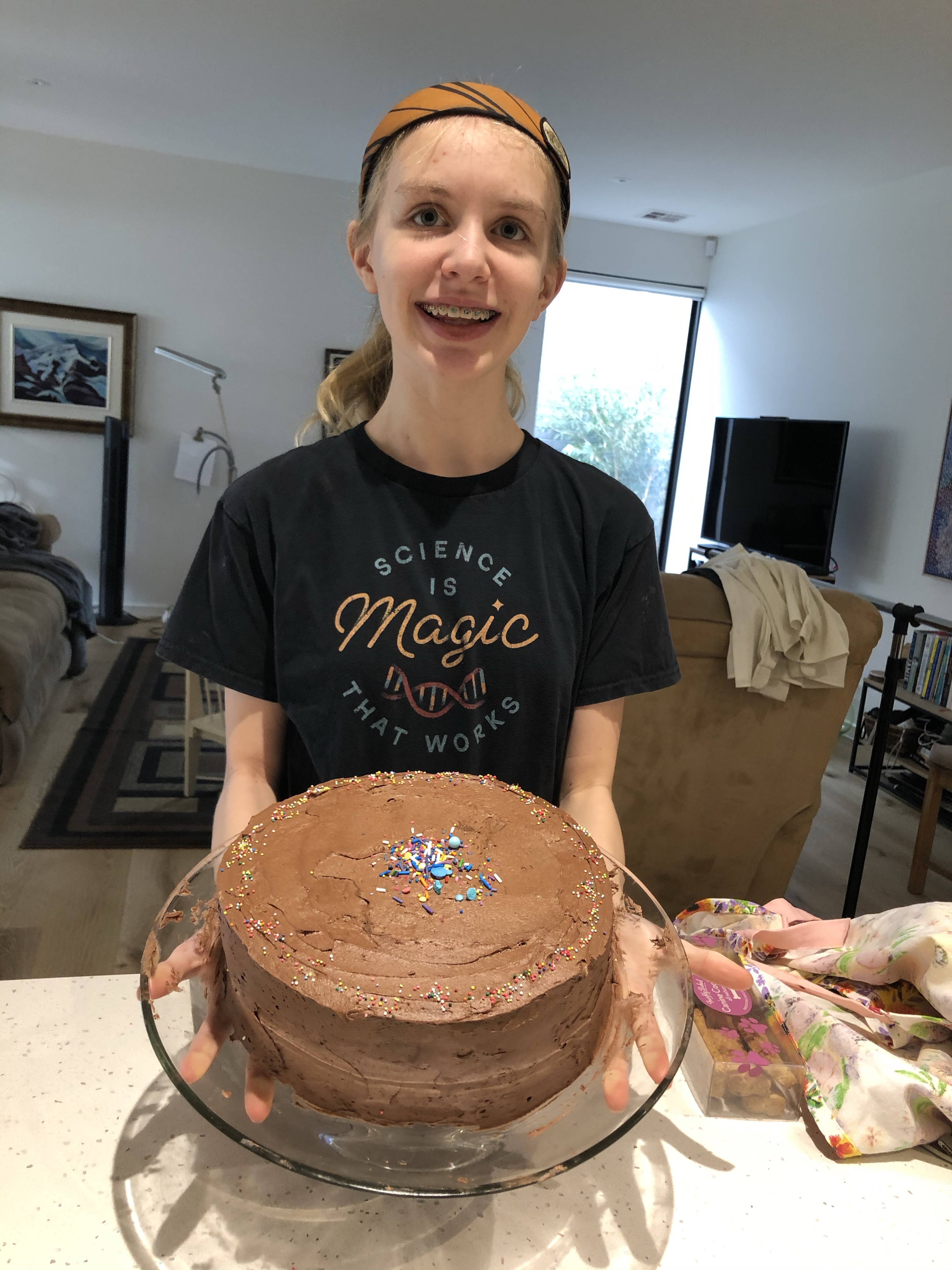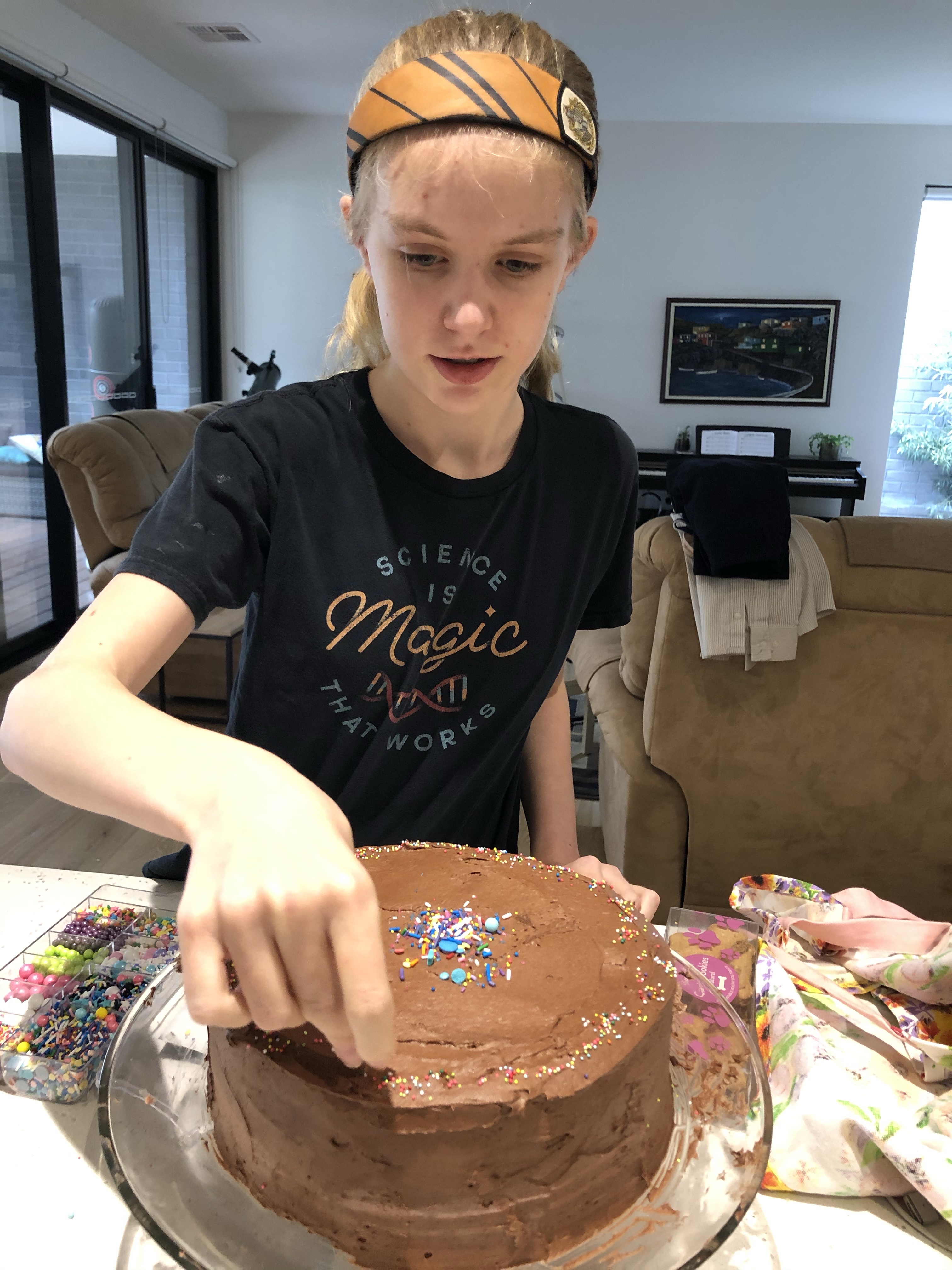 Frosting! I forgot to take photos of Laura until she reached the sprinkling stage. Cake is a success! Share this: Click to share on X (Opens in new window) X Click to share on Facebook (Opens in new window) Facebook Like Loading... Related