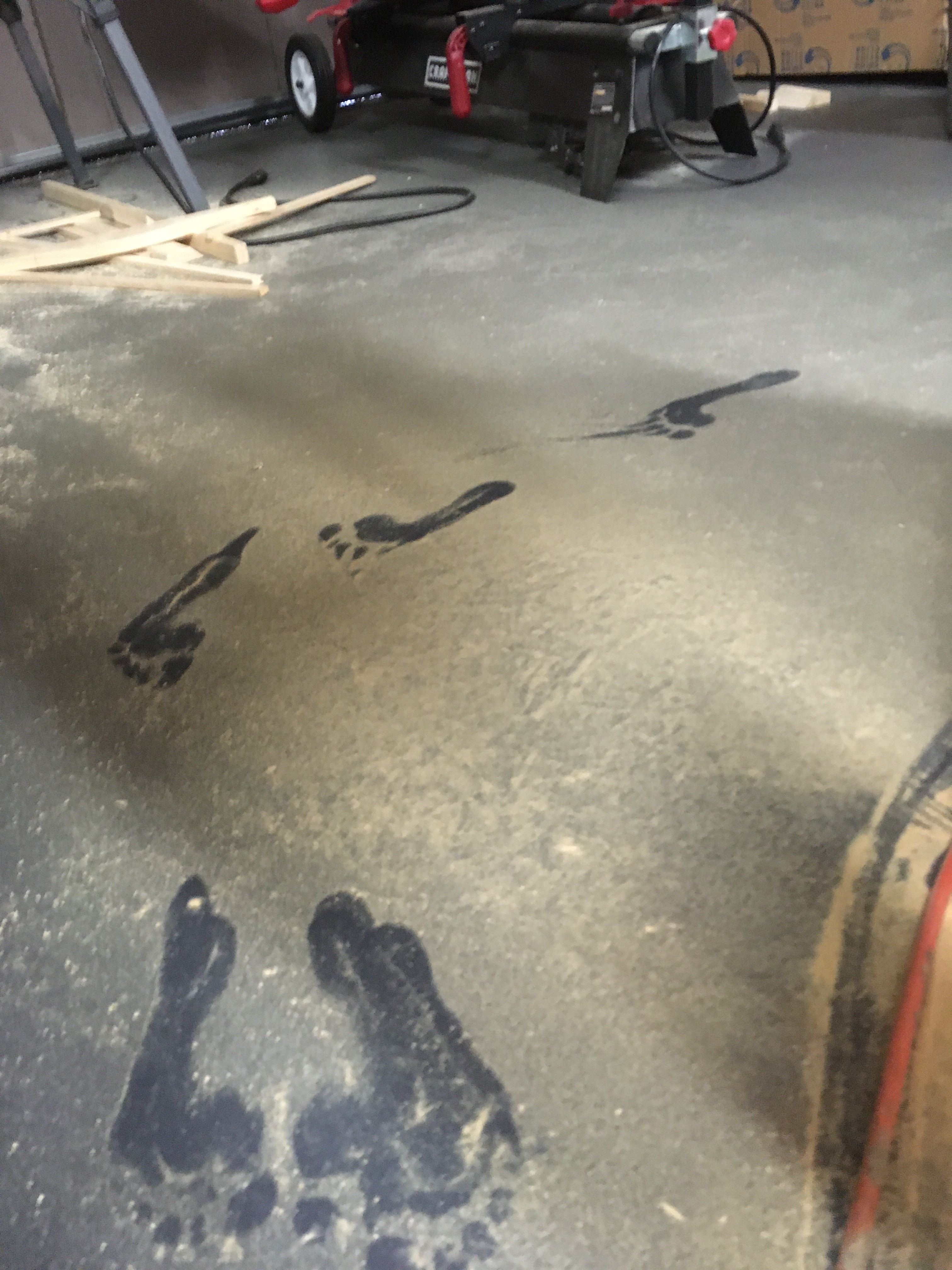 I was sanding the finish off the bench in the garage and Colin came to show me something. Then walked around me to head back inside.