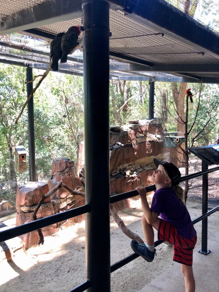 He was enraptured with the gang-gang cockatoos at the wildlife sanctuary. We still haven’t seen any in the wild, but he loved checking these ones out.