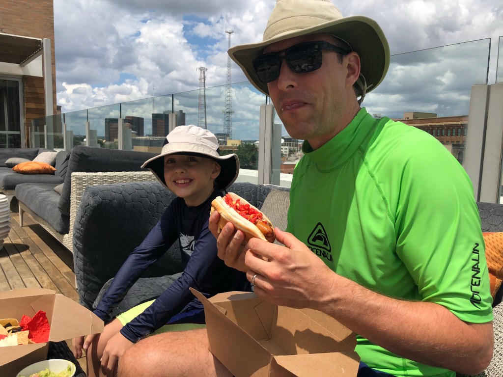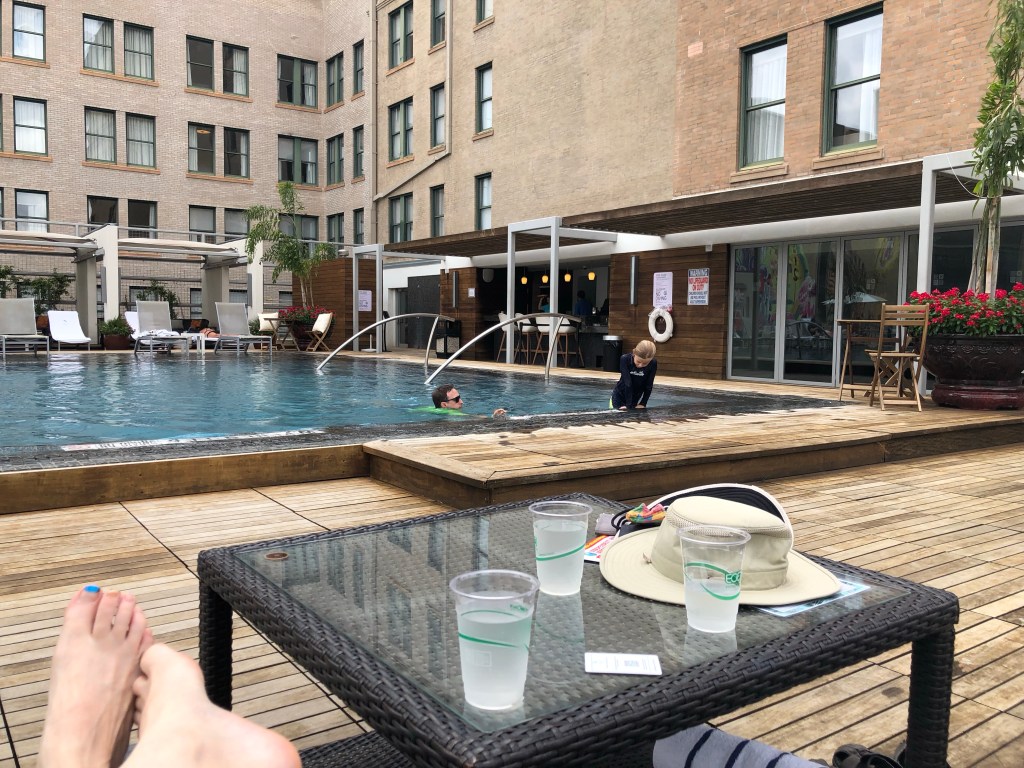 It was a very hot morning at the Alamo and on our river barge tour, so we spent some time at the hotel pool in the afternoon. Cliff had a healthy lunch.