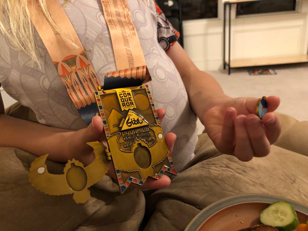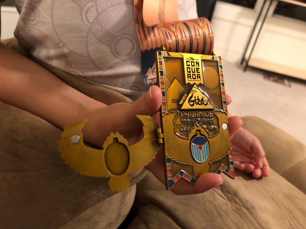 Colin completed his activity challenge! He cycled the distance from Cairo to the Giza pyramids (75 km) in just over two weeks. His medal arrived in the post today and he is very proud of it!