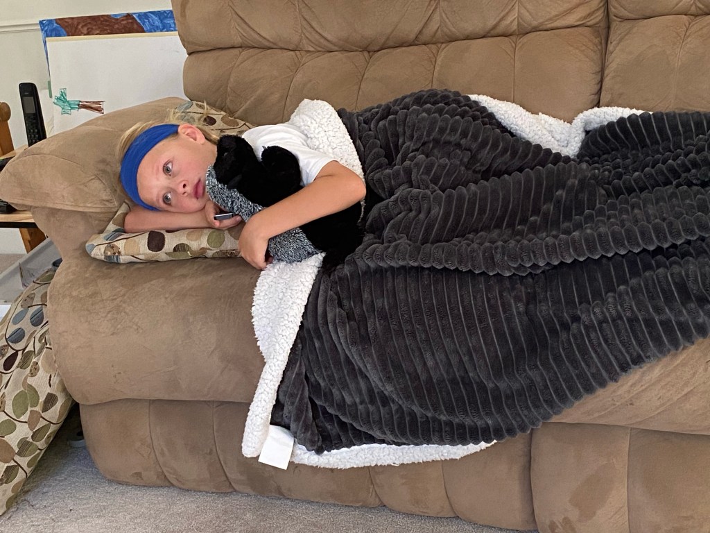 Swimmer’s ear – and waiting on the couch for the drops to go in. This photo is from Sunday – he is much improved now, thankfully!