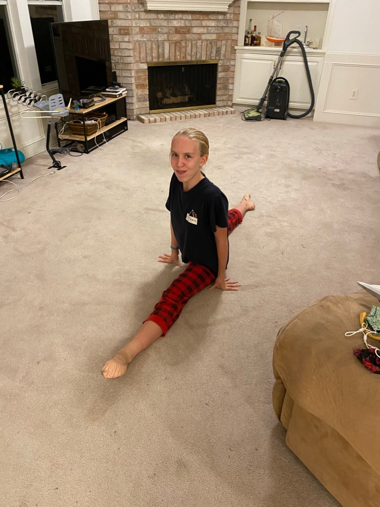 Laura has been working so hard at her flexibility for a couple of years, and has finally gotten her splits on one side. (And is very close on the other!)