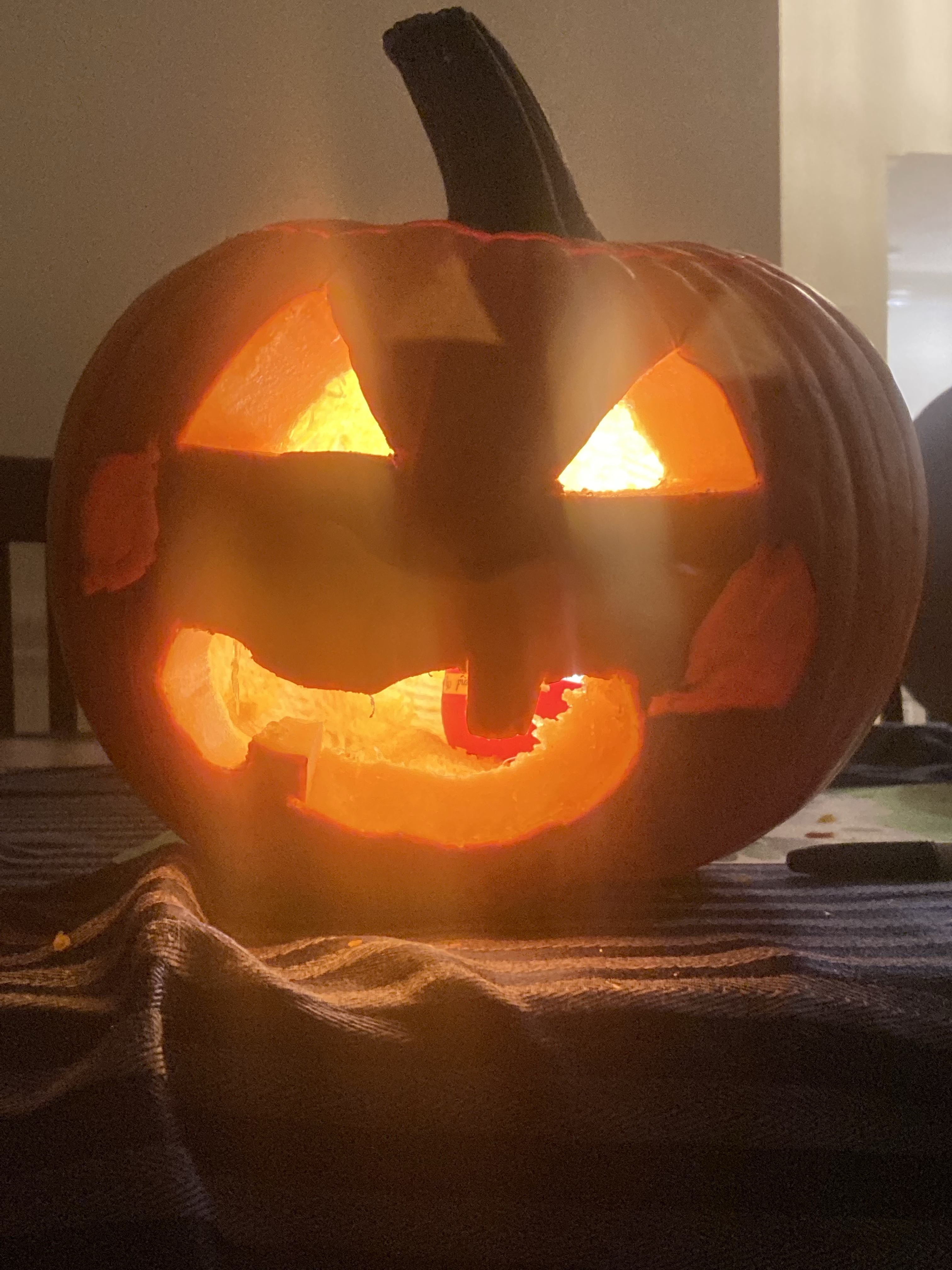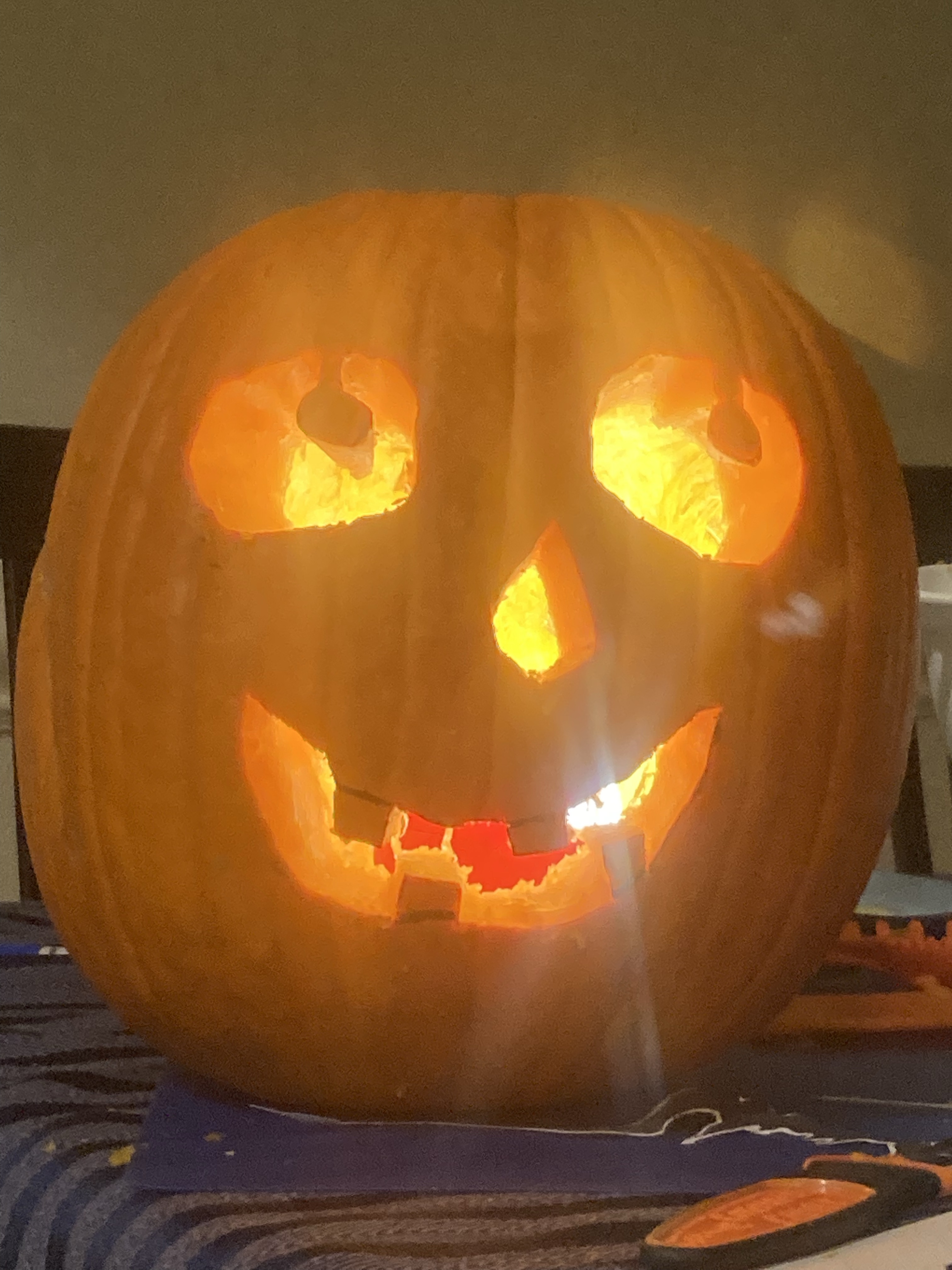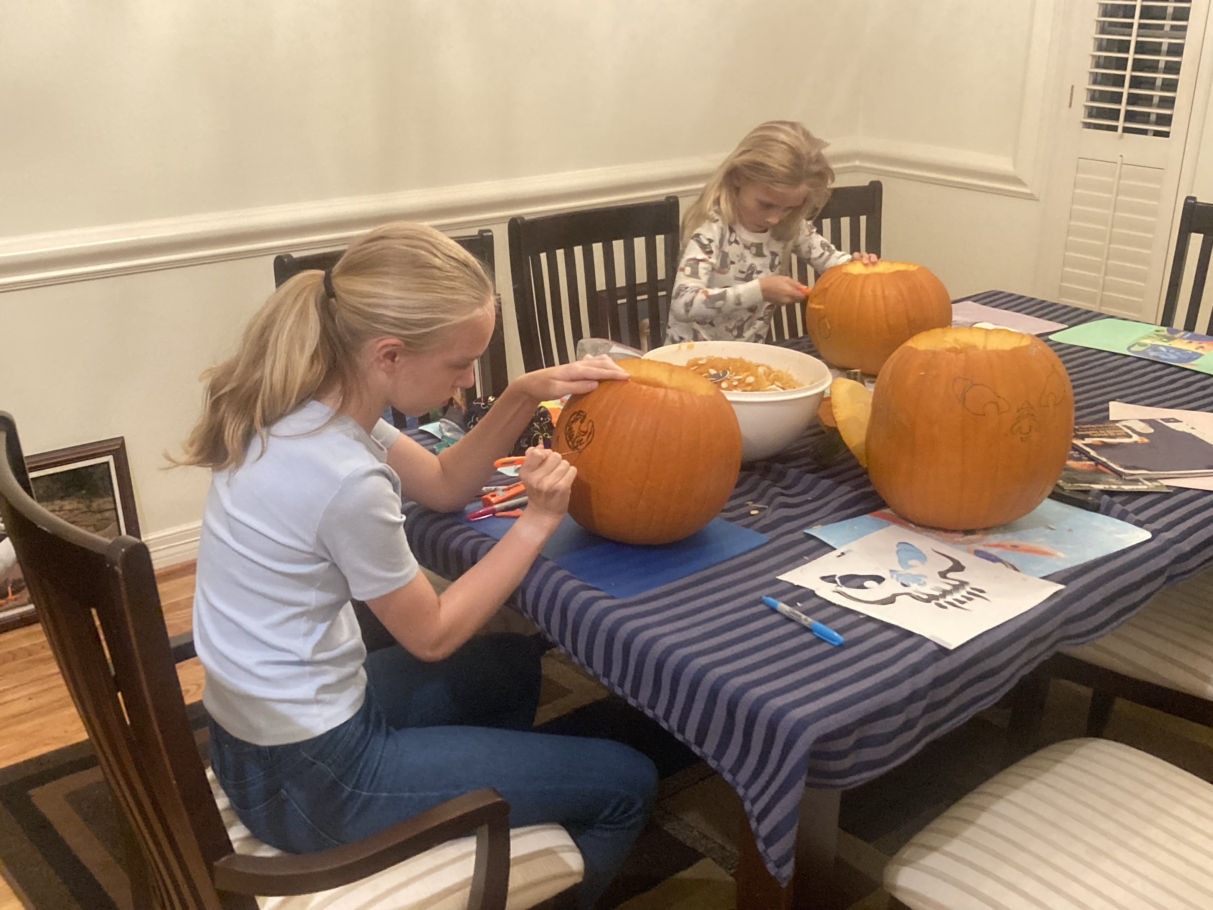Carving Pumpkins Halloween is almost here and we hadn’t carved our pumpkins yet. Problem solved tonight. Three very fun designs. Share this: Click to share on X (Opens in new window) X Click to share on Facebook (Opens in new window) Facebook Like Loading... Related