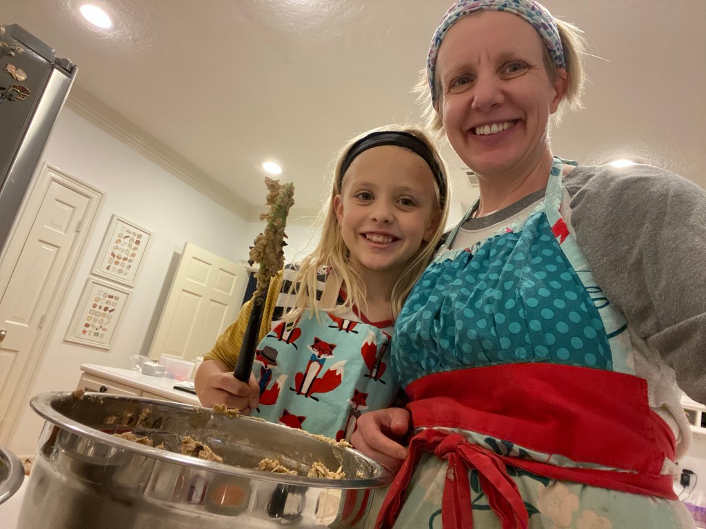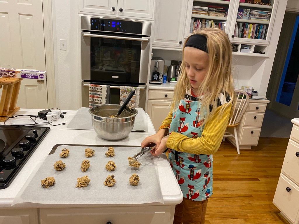 Laura and Daddy have Nutcracker rehearsals every Sunday afternoon. Today Colin and I made oatmeal chocolate chip cookies while they were dancing.