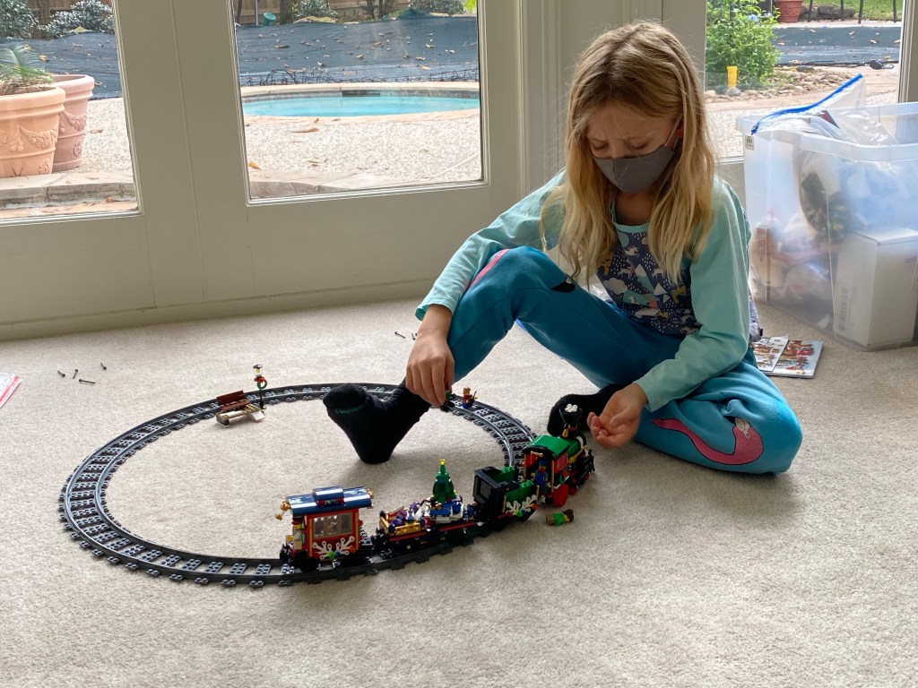 Colin has COVID (hence the mask in the house), so once he finished his school work he got to start building some of the Christmas Lego sets. He loves the train, because it’s the most fun to play with once complete.