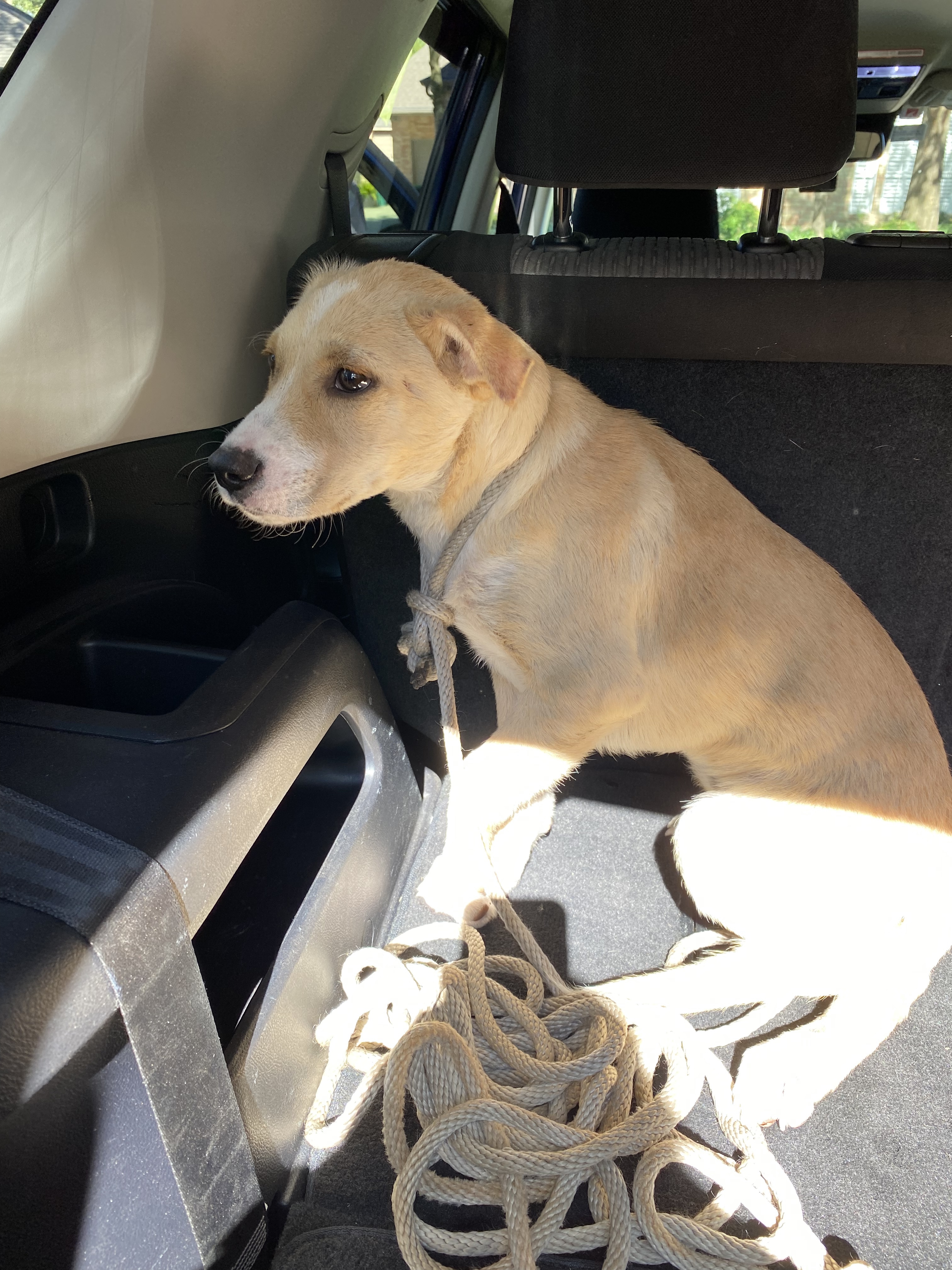 Pancake was pulled out of the lake by our house 3 weeks ago. She was already limping but had enough energy to run away. Colin and I were walking to the lake and were asked to help catch her. Once caught we took financial responsibility to get her to the vet.